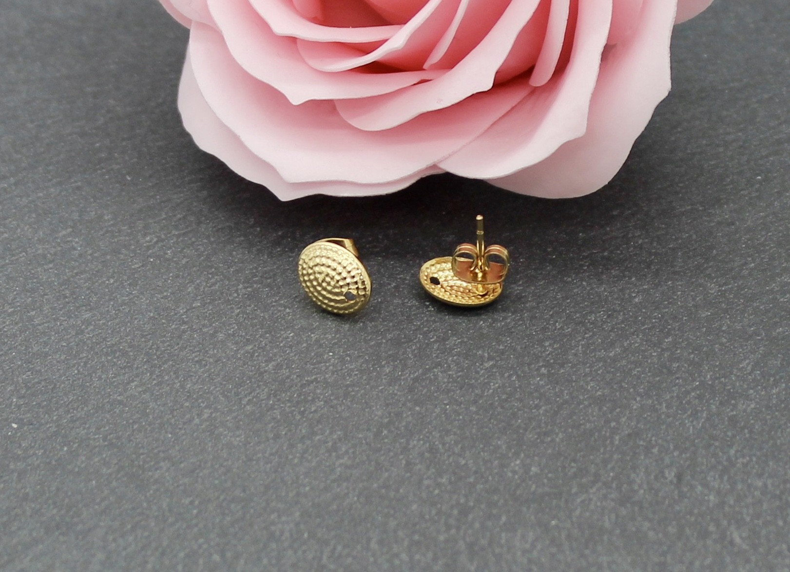 4 supports de boucles d'oreilles puces ovales à pois en acier inoxydable doré, BOA78
