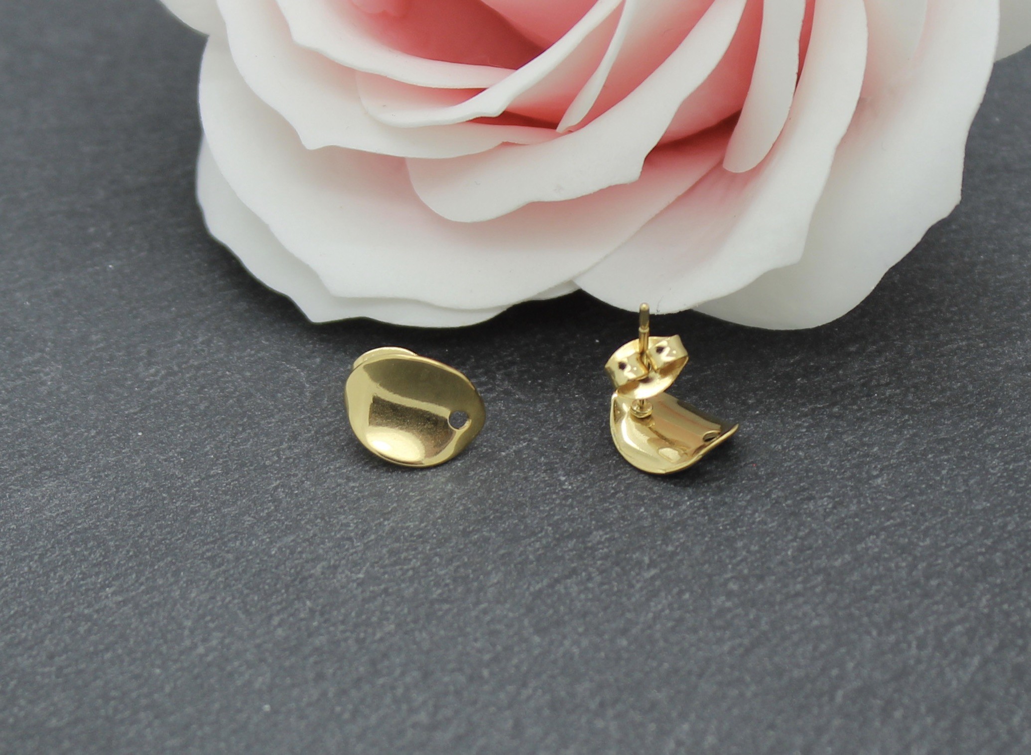 Deux paires de boucles d'oreilles puces forme ovale incurvé en acier inoxydable or.