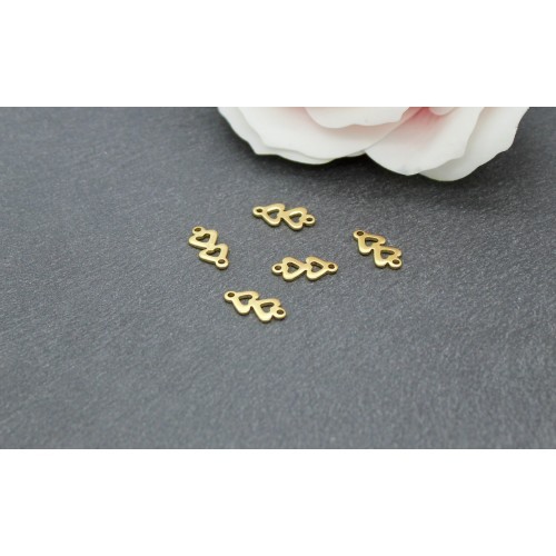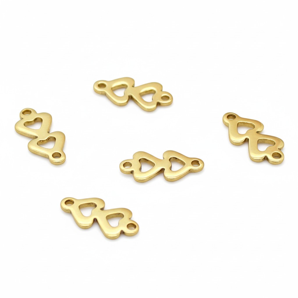 Lot composé de 6 connecteurs double cœurs en acier inoxydable 304 or.