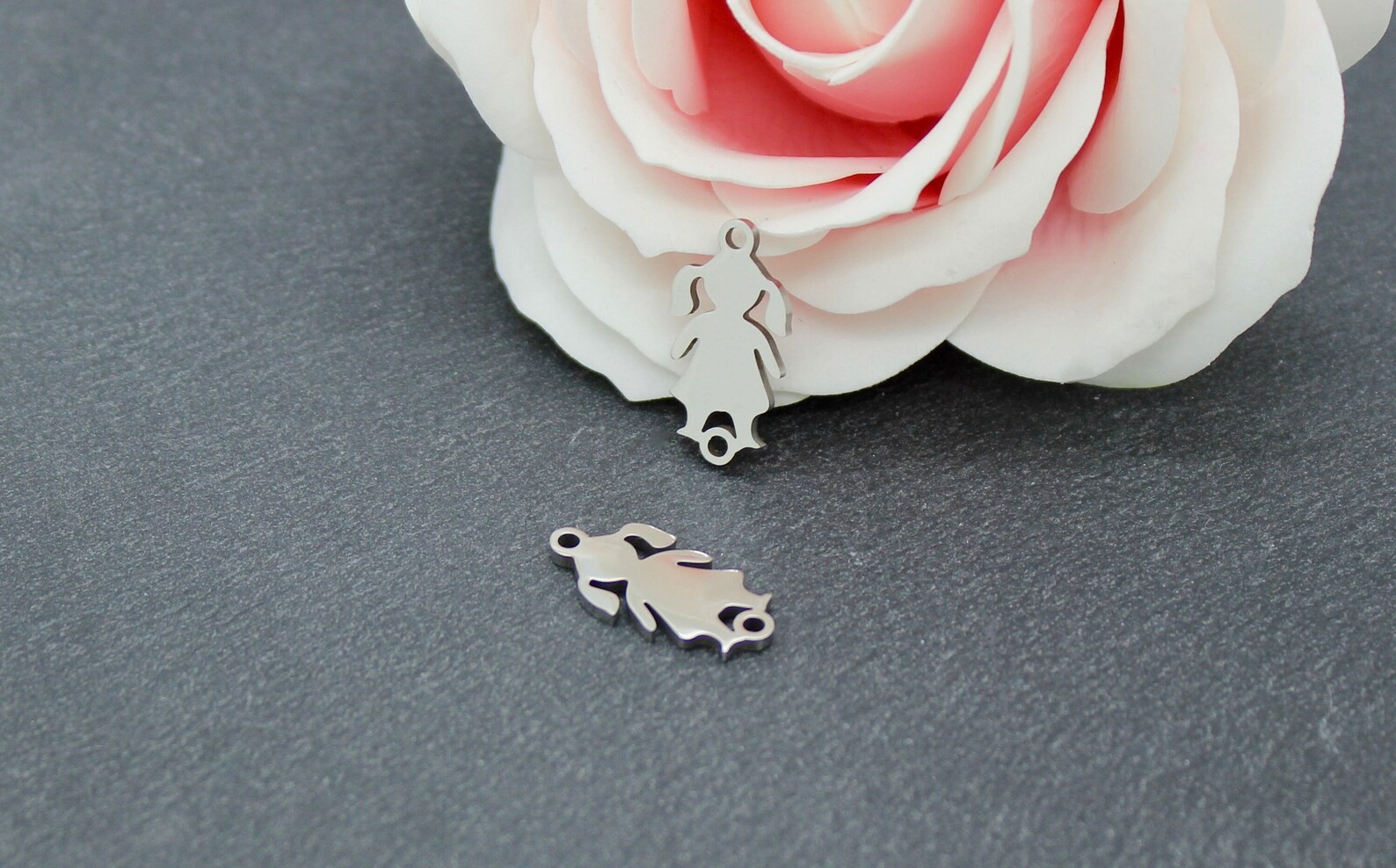 4 connecteurs, petite fille, acier inoxydable, 20.5 mm x 10 mm, AC408