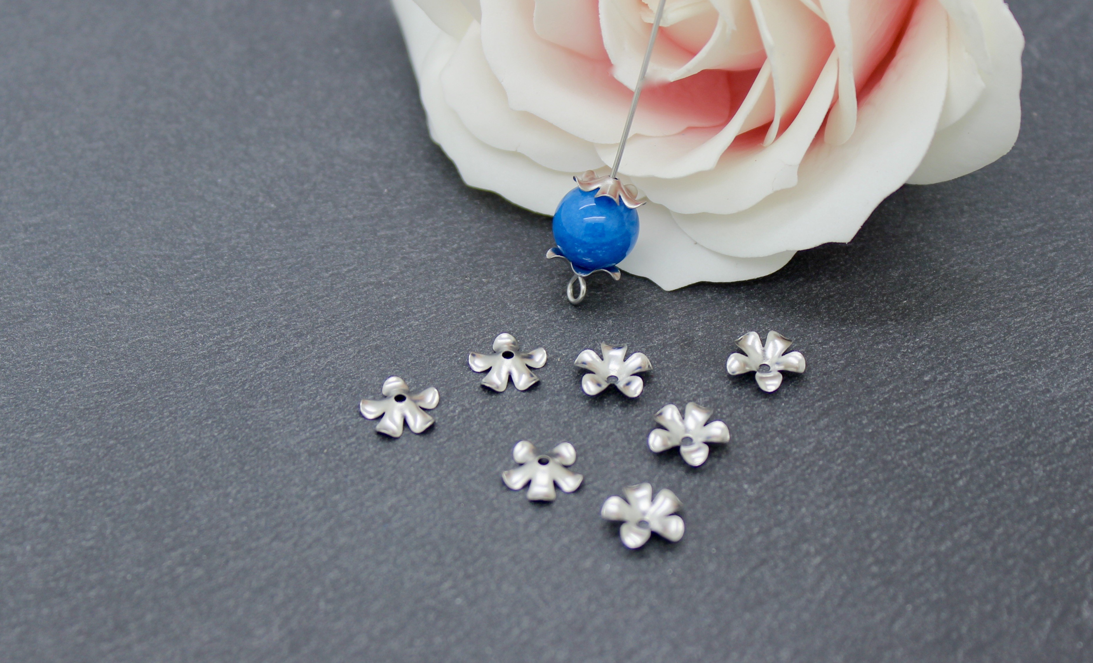 Lot composé de 100 coupelles fleur en acier inoxydable 304.