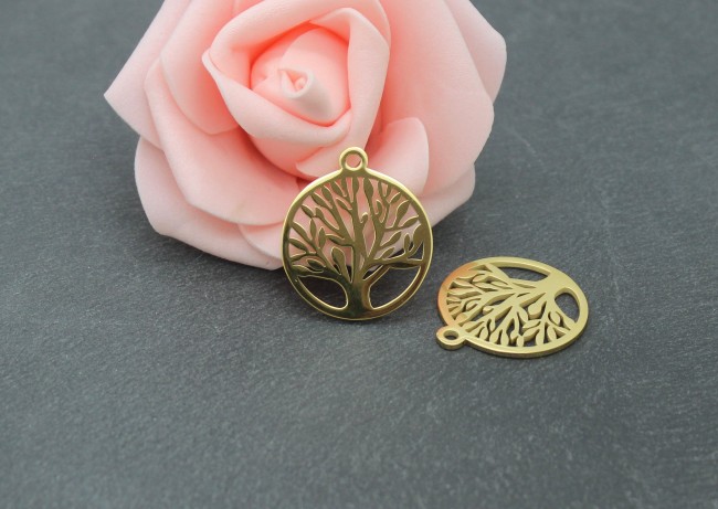 Un pendentif arbre de vie en acier inoxydable or, placage ionique.