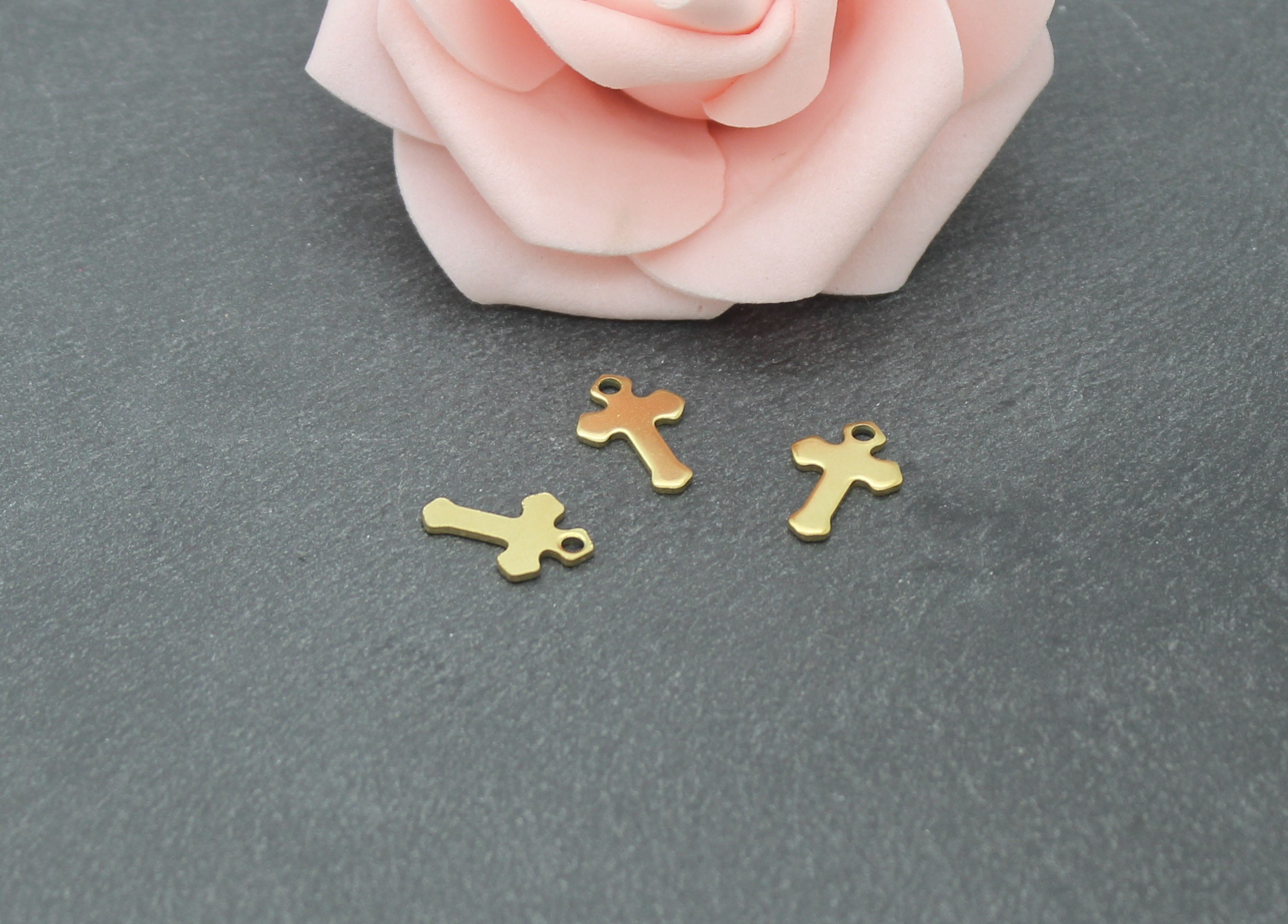 Lot composé de 6 breloques croix en acier inoxydable or, placage ionique.
