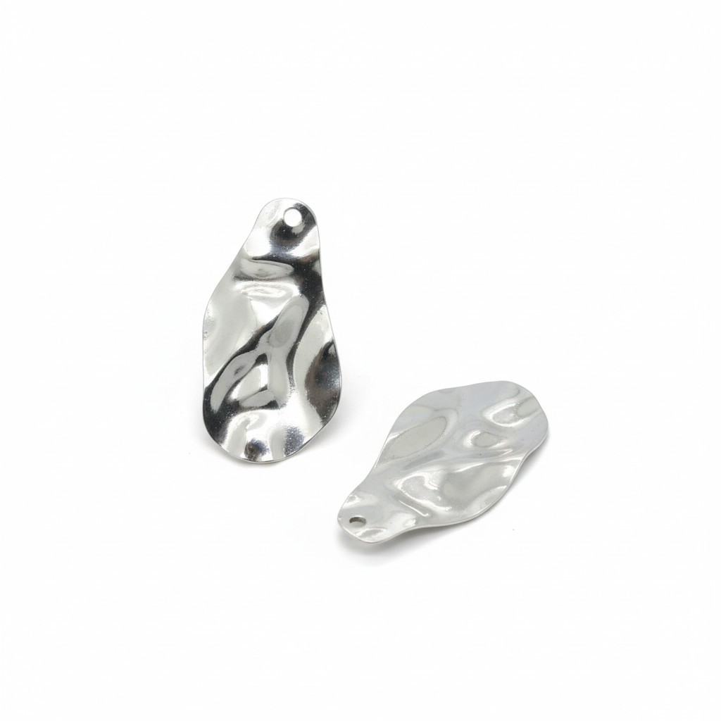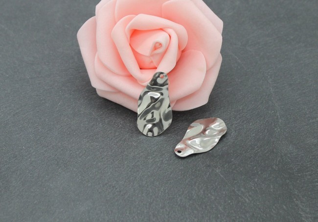 8 breloques effet froissé en acier inoxydable, 30 x 17 mm, AC680