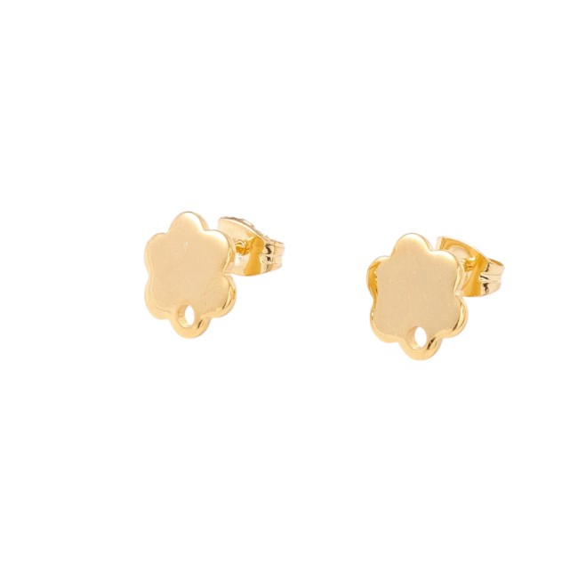 Supports de boucles d'oreilles puces fleur, acier inoxydable doré 201 plaqué or 24K.