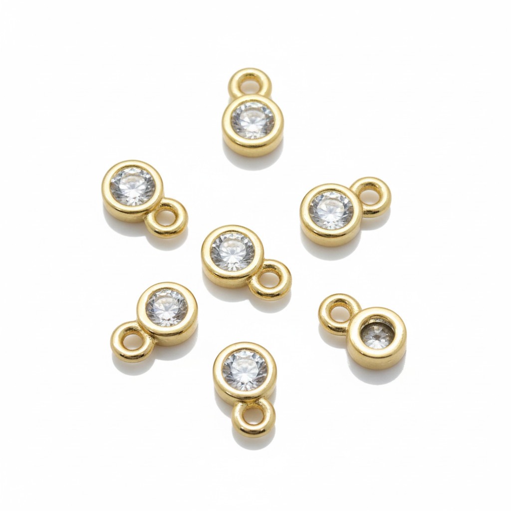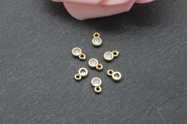 10 breloques zirconium blanc et laiton or, 6 x 4 mm, BR124