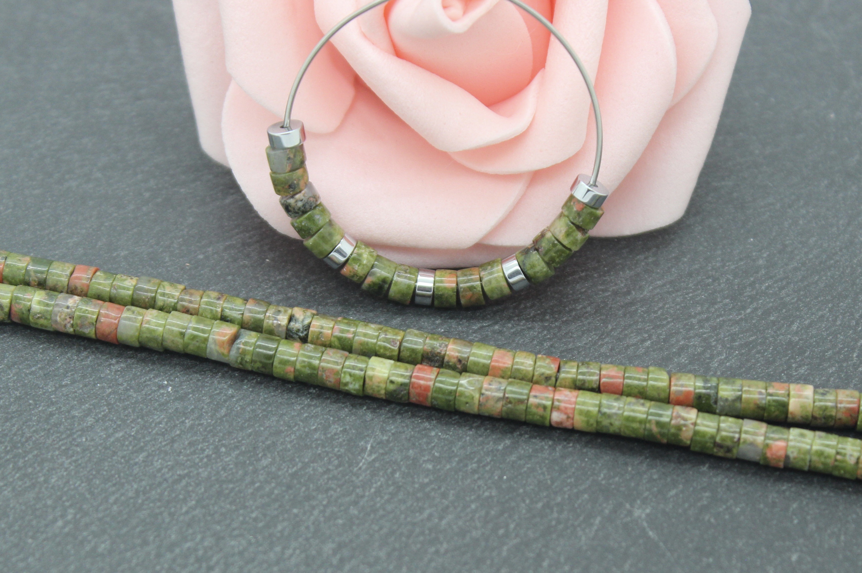 Lot composé de 30 perles unakite heishi.