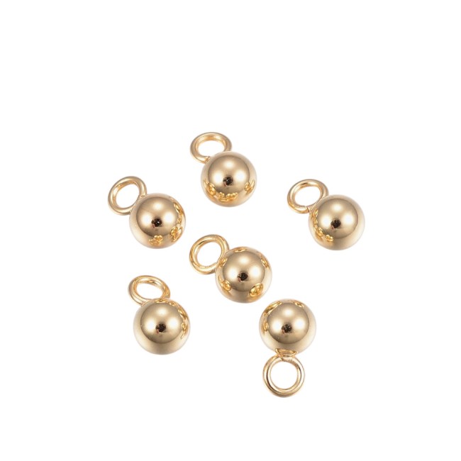 10 breloques boule en acier inoxydable doré 304, 6 x 3 mm, AC160