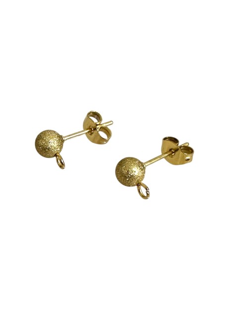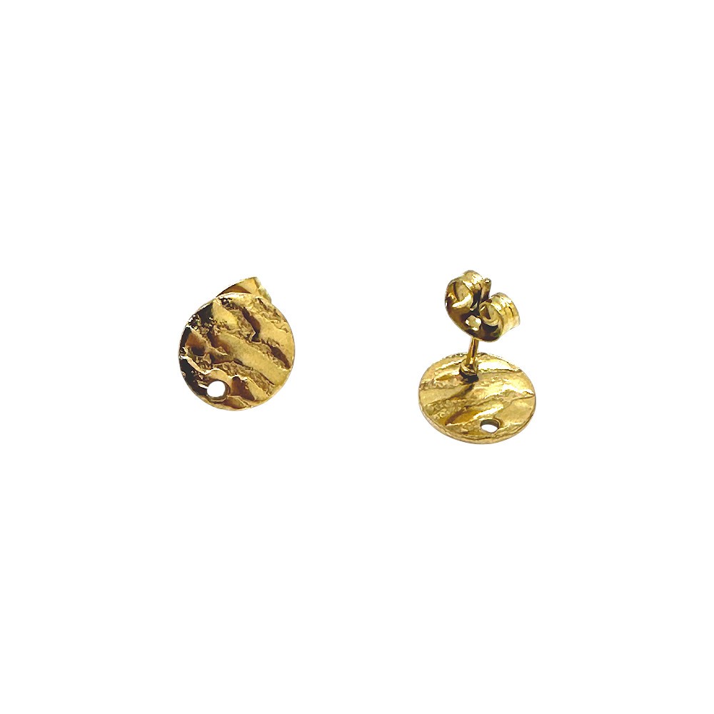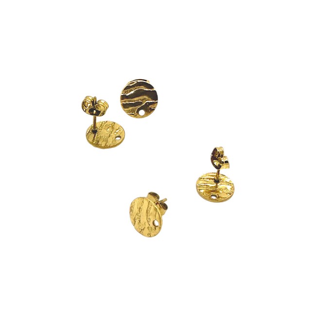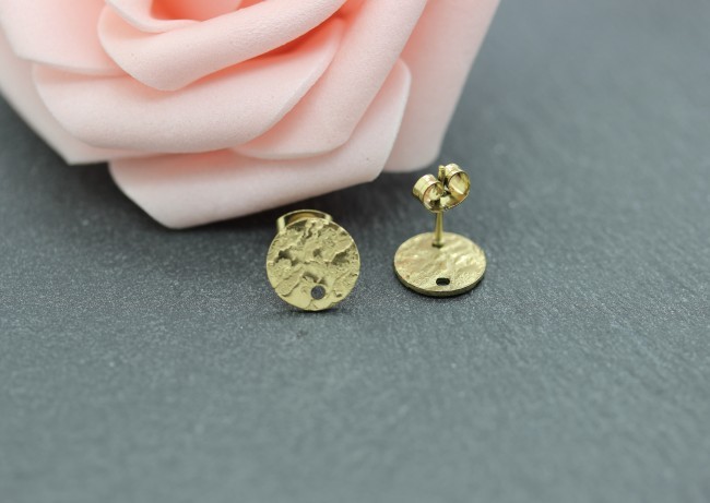 Lot de quatre ou douze supports de boucles d'oreilles puce forme ronde et texturée en acier inoxydable doré 304, placage ionique.