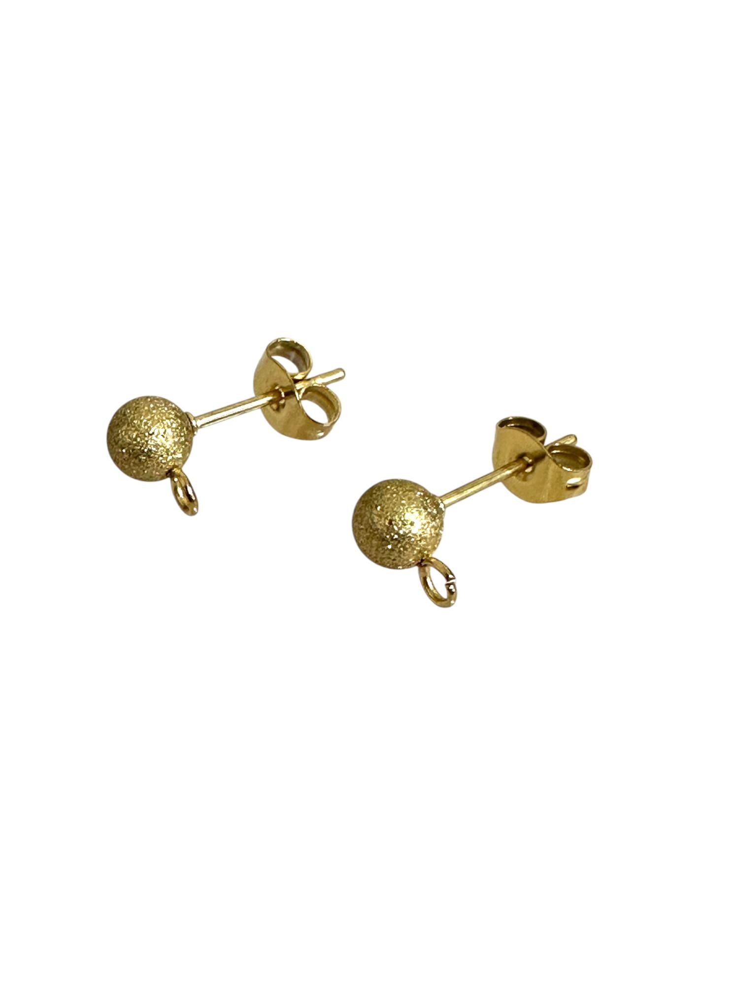 Lot composé de 4 supports de boucles d'oreilles puces tête boule effet givré en acier inoxydable doré 304.