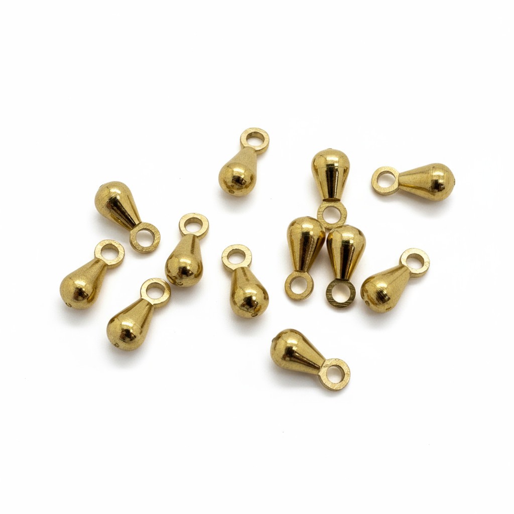 Lot de cinquante breloques mini goutte, embout de chaîne en laiton brut.