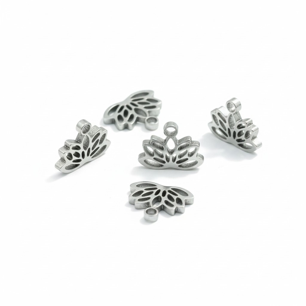 Lot de six mini breloques fleur de lotus en acier inoxydable 304.