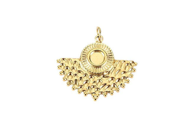 Un pendentif éventail, soleil, en acier inoxydable plaqué or 14k pour cabochon rond de 6 mm.