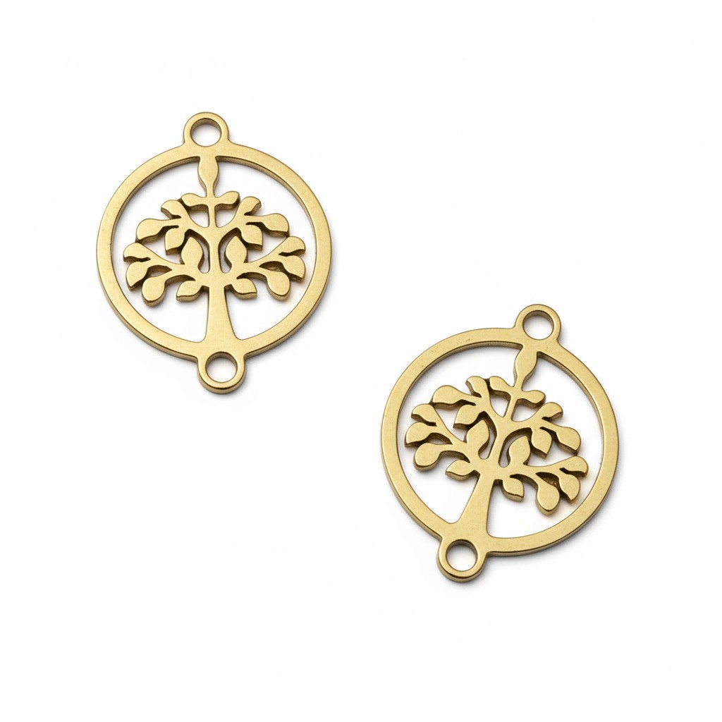 Lot composé de deux connecteurs arbre de vie en acier inoxydable doré 201.
