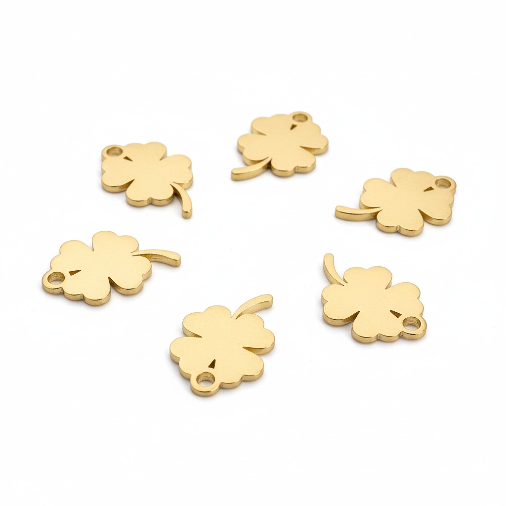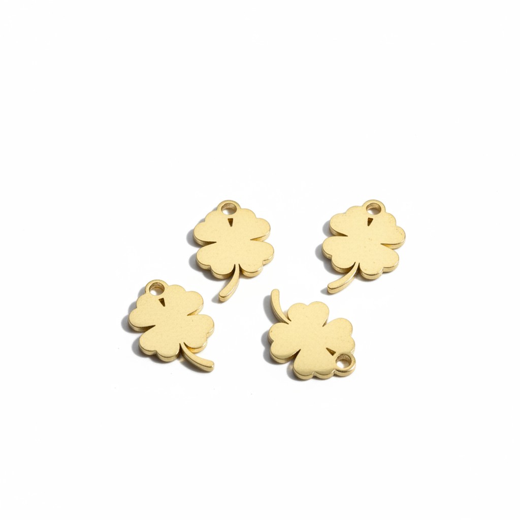 Quatre pendentifs trèfle à quatre feuilles en acier inoxydable 304, placage sous vide.