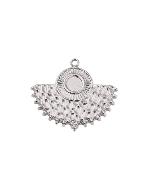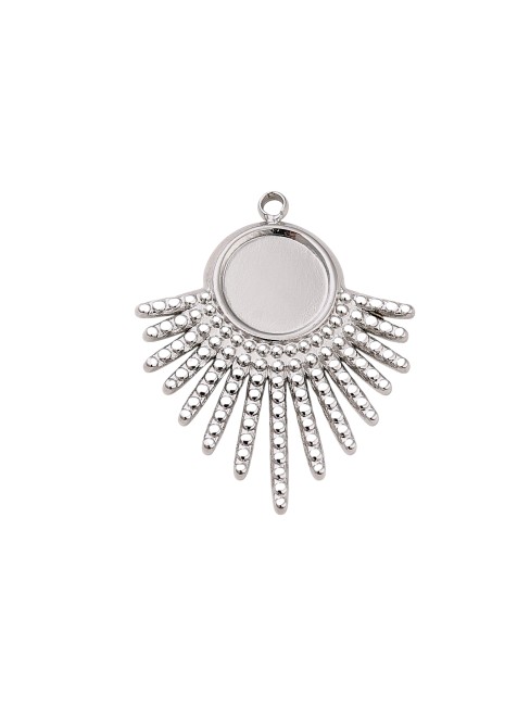 Pendentif plat et rond pour cabochon en acier inoxydable 304 plaqué or 14k, avec anneaux de jonction.