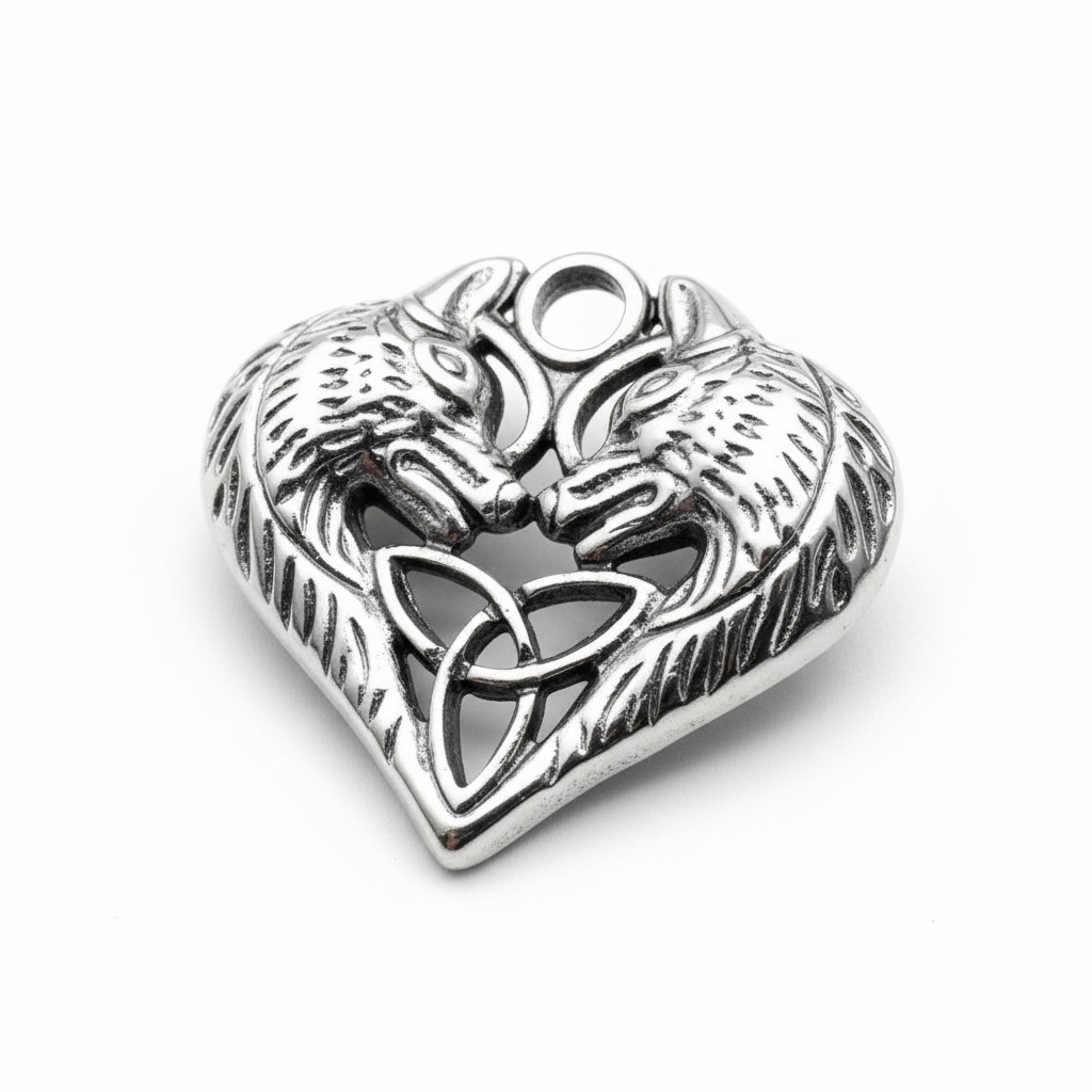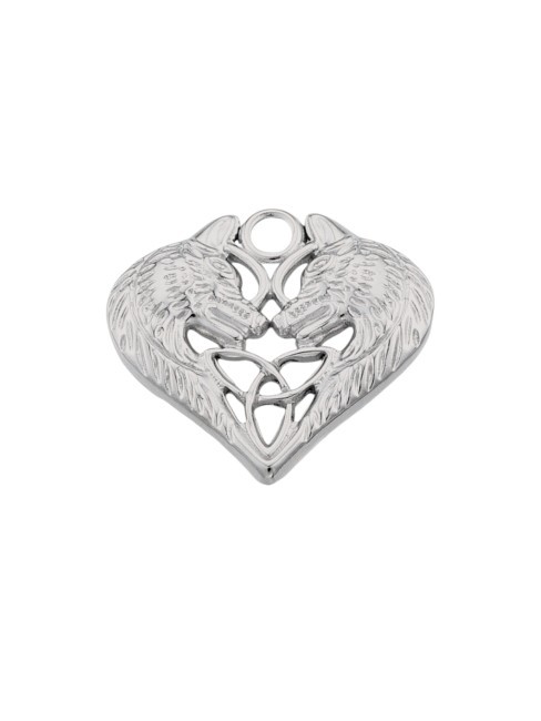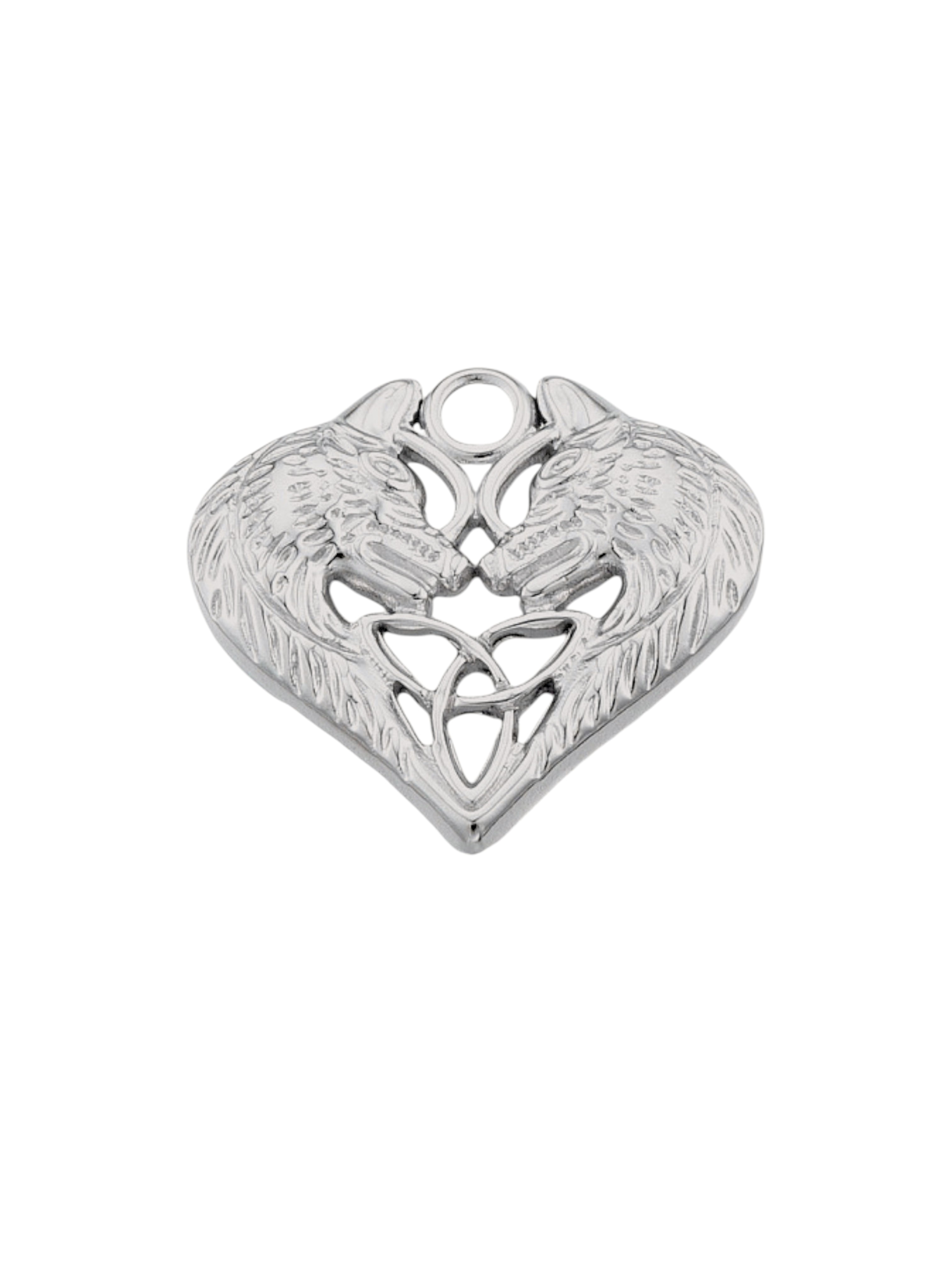 Deux pendentifs en acier inoxydable 201 en forme de cœur avec loups et nœud de la trinité.