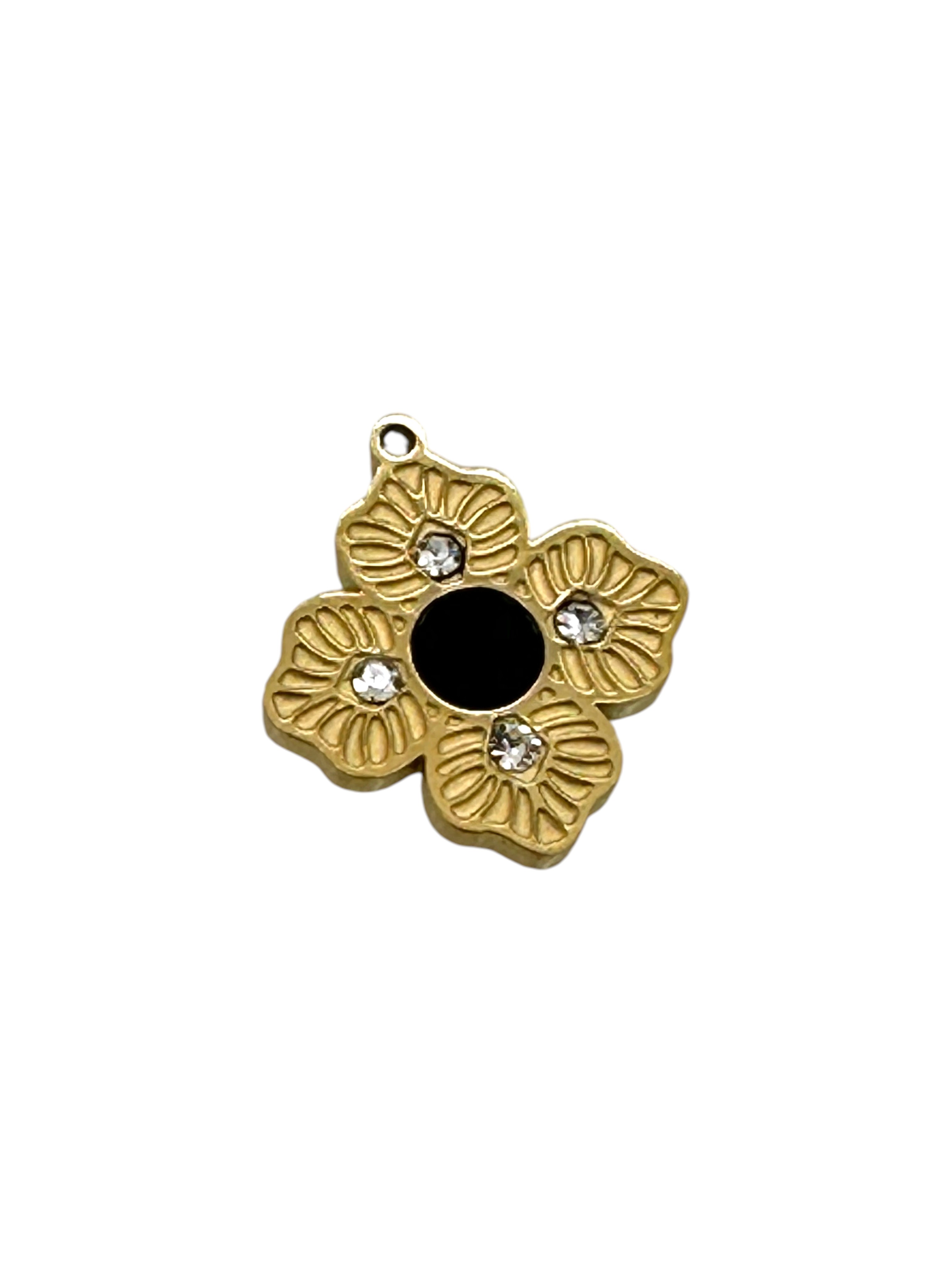 Pendentif fleur et strass, acier inoxydable 304, placage ionique.