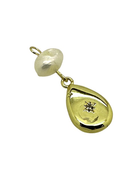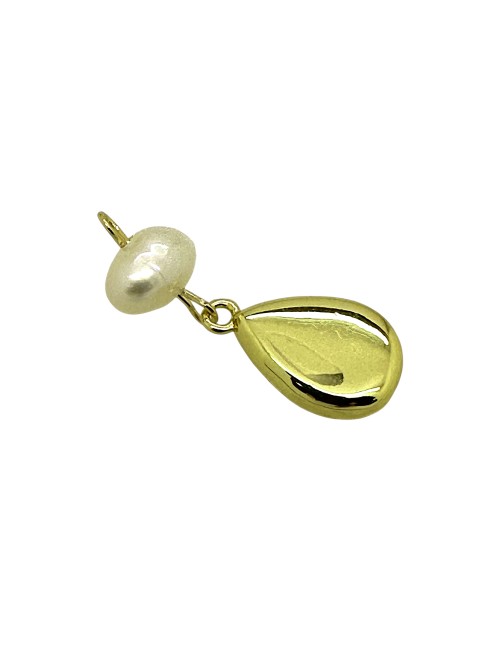 Pendentif goutte avec perle naturelle, avec zircon cubique en laiton plaqué longue durée, plaqué or 18k, sans cadmium et sans plomb.