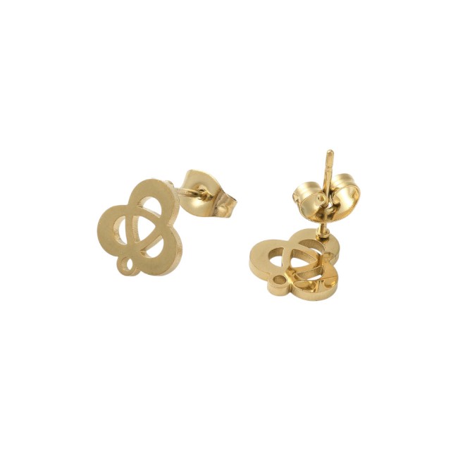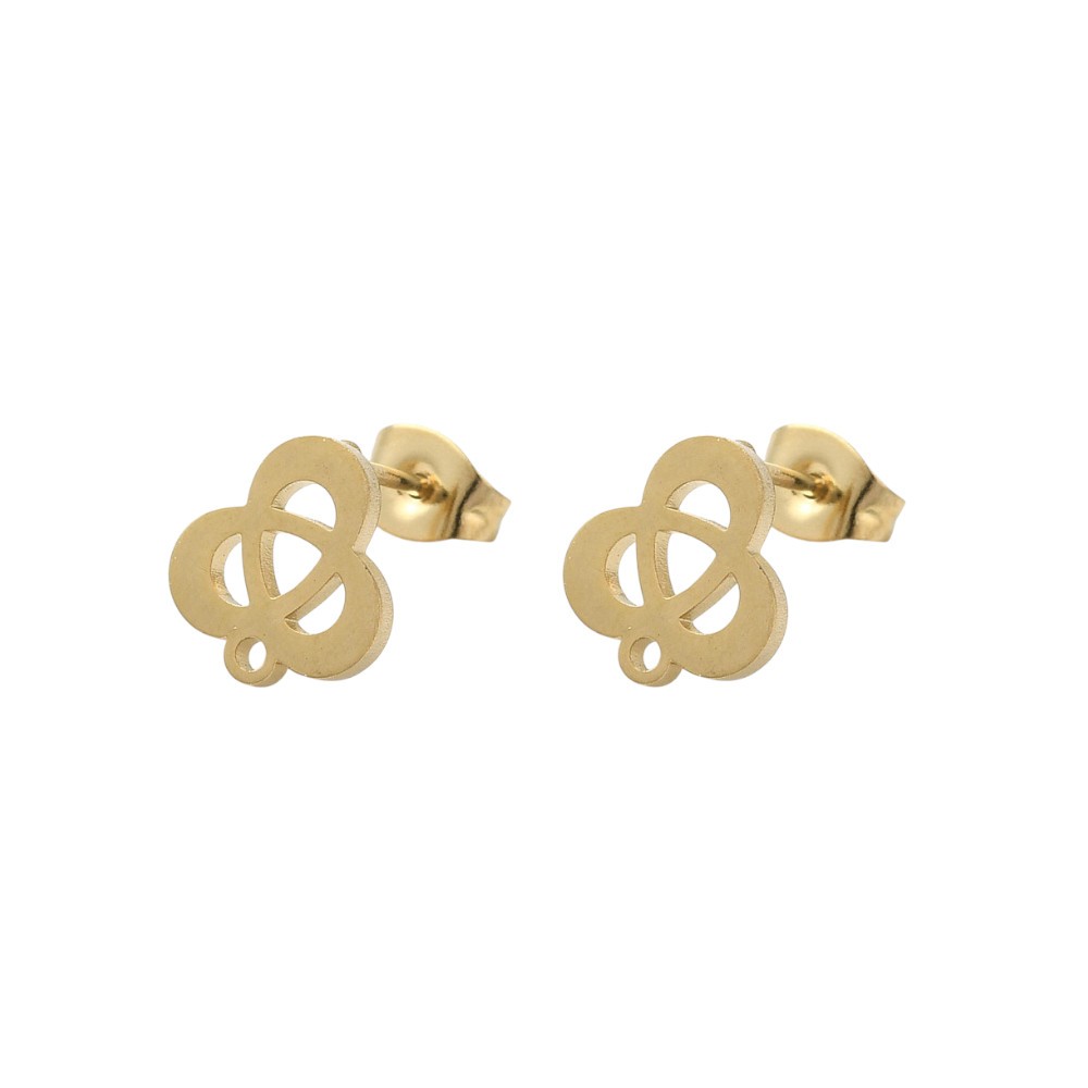 Lot de quatre supports de boucles d'oreilles puces forme fleur en acier inoxydable 304 doré avec placage ionique (IP).