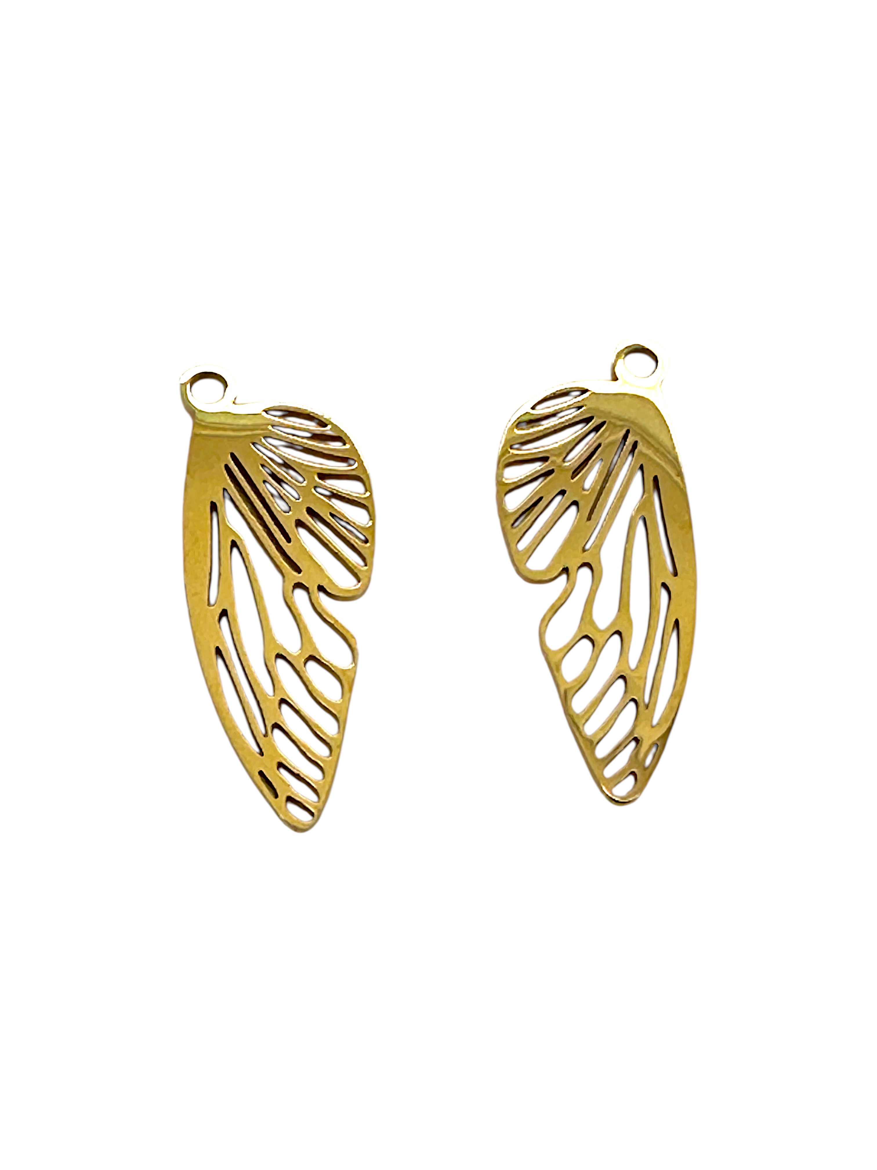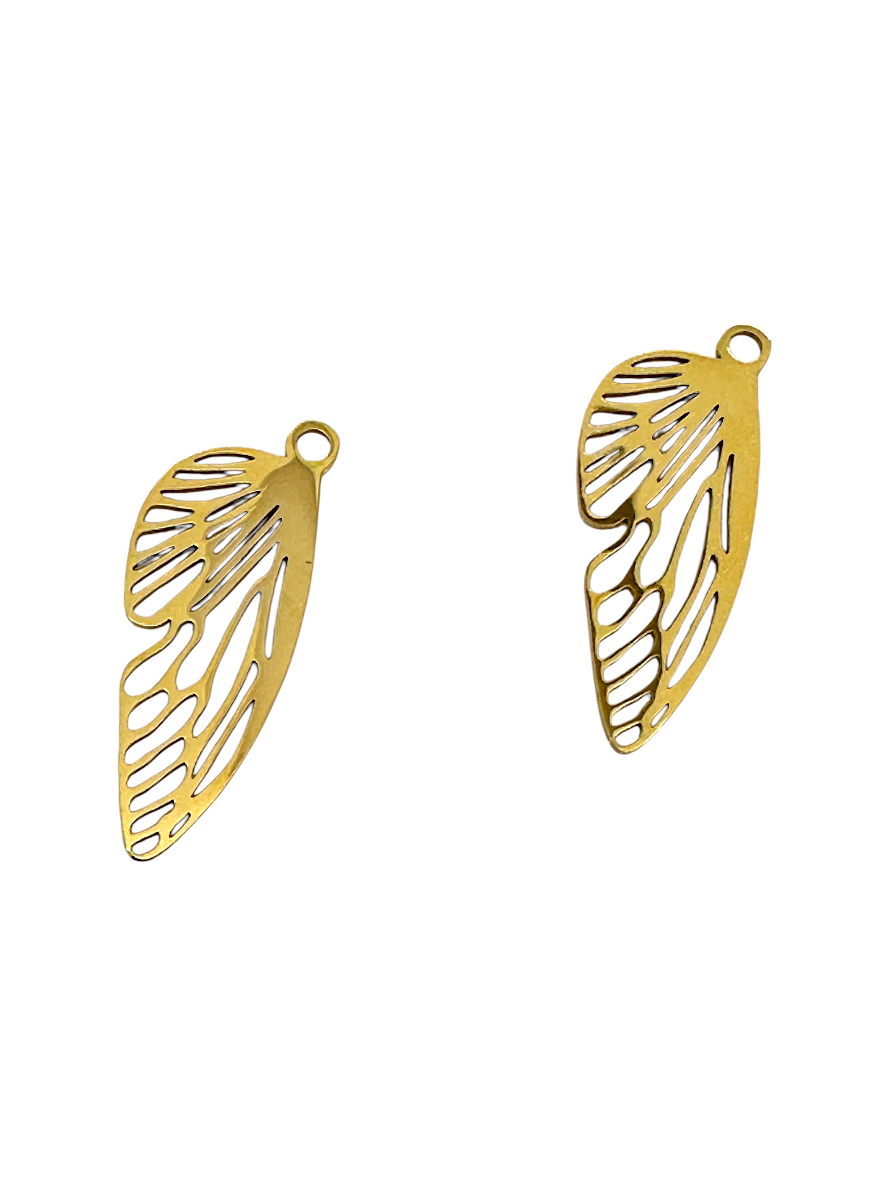 Deux pendentifs aile d'insecte en acier inoxydable chirurgical 316 avec placage ionique (IP), plaqué or 24k.