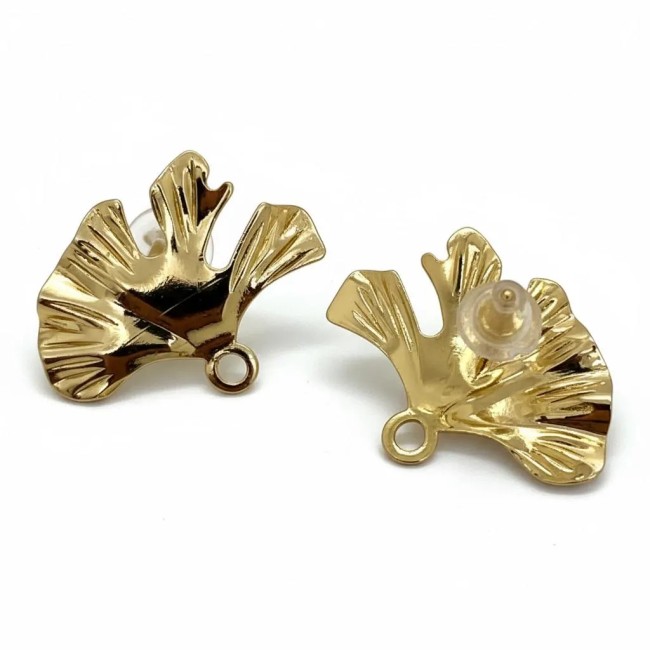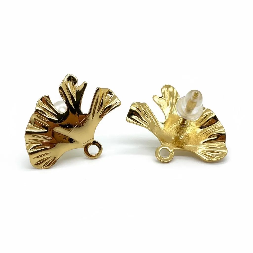Une paire de boucles d'oreilles puce forme feuille en laiton plaqué rack, plaqué or 18k.