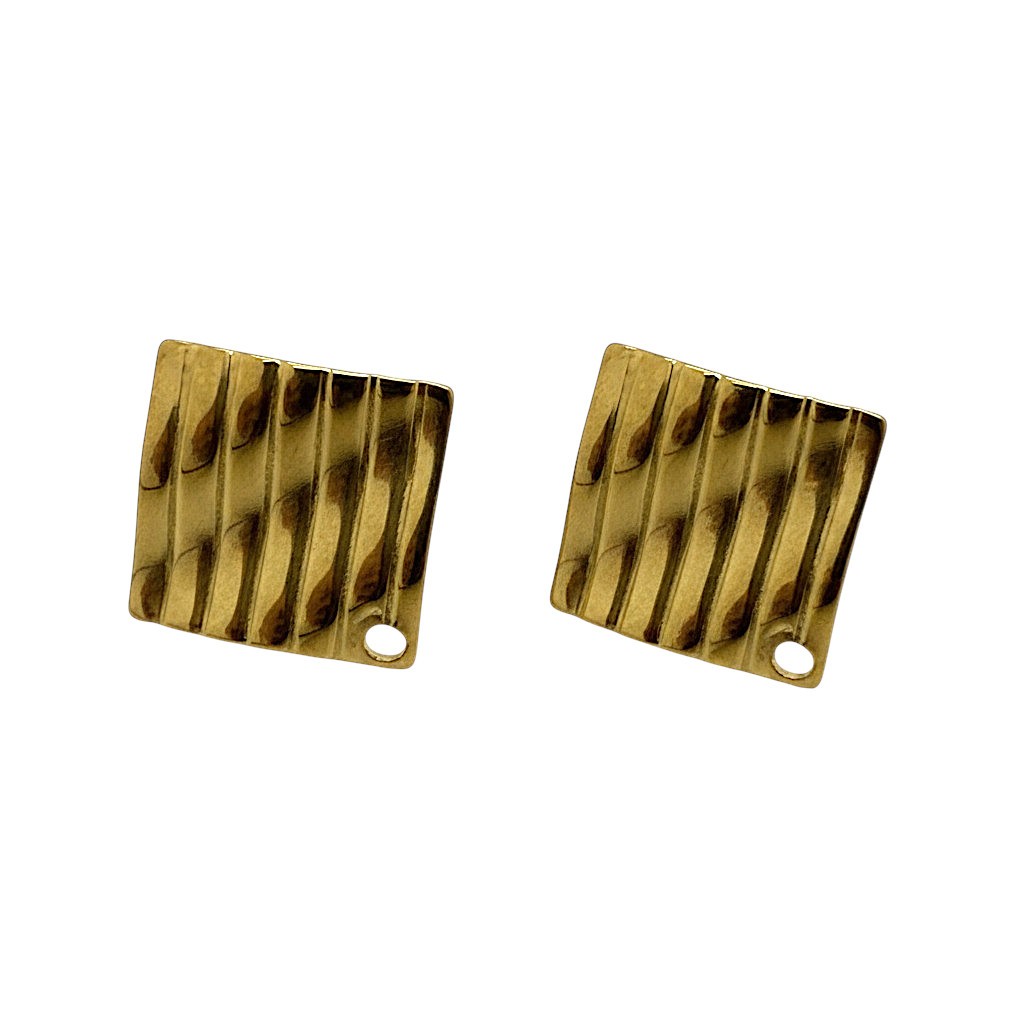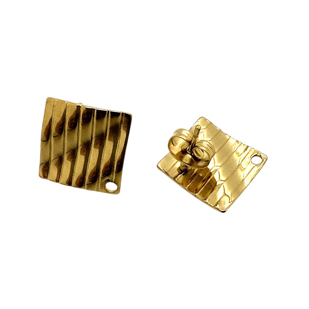 Deux supports de boucles d'oreilles puces en acier inoxydable doré 304, losange ondulé.