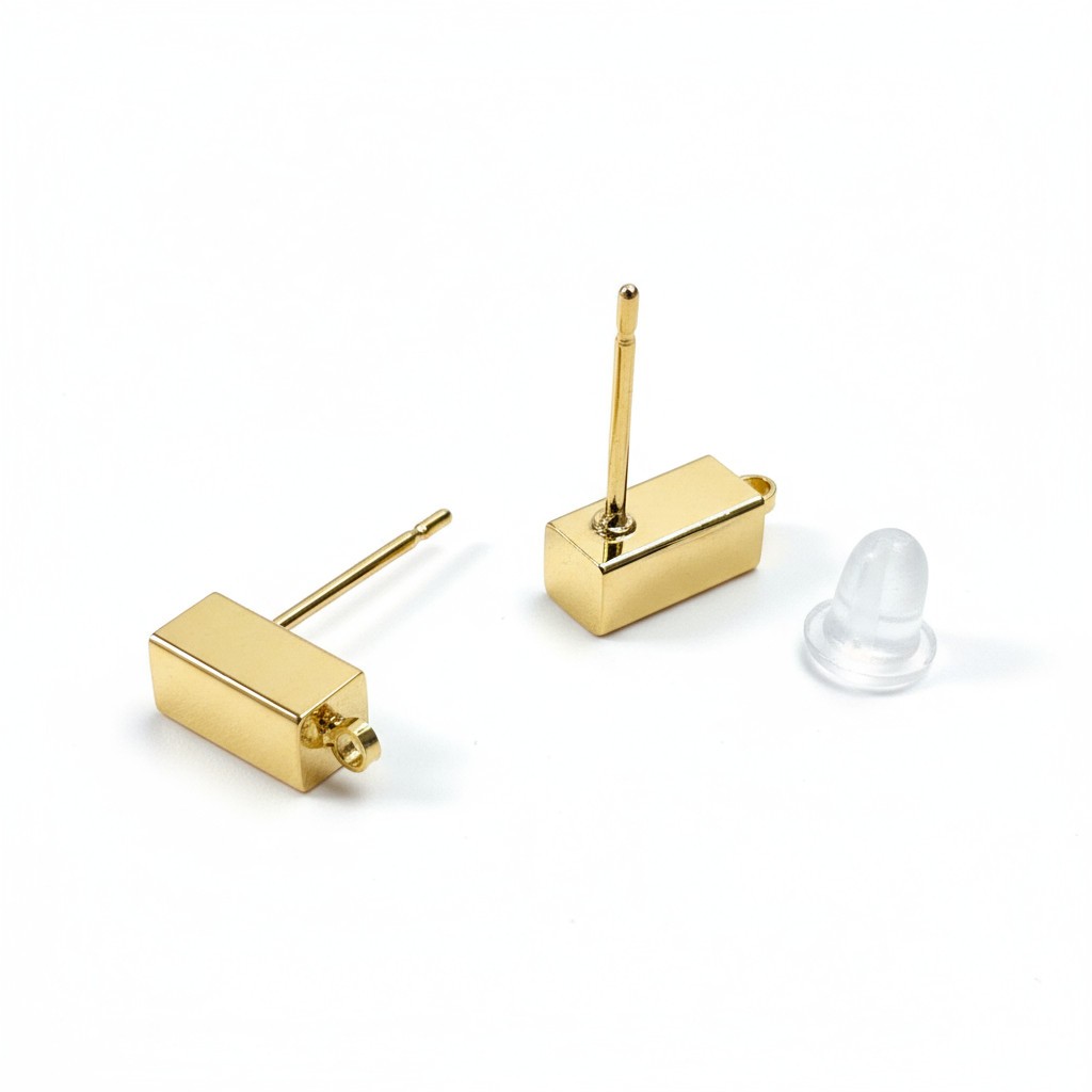Une paire de supports de boucles d'oreilles rectangle en laiton plaqué or 18k.