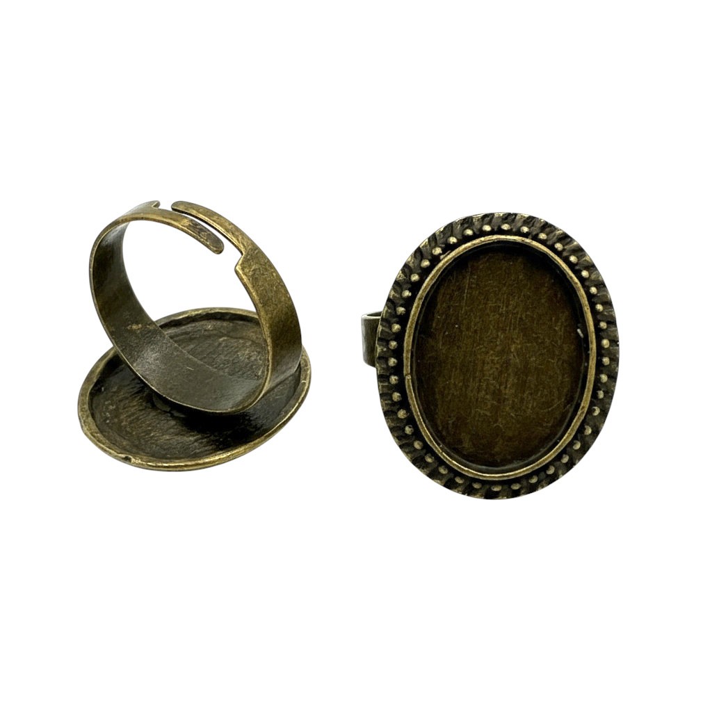 Un support de bague réglable de style médiéval en laiton bronze pour cabochon ovale de 18x13 mm