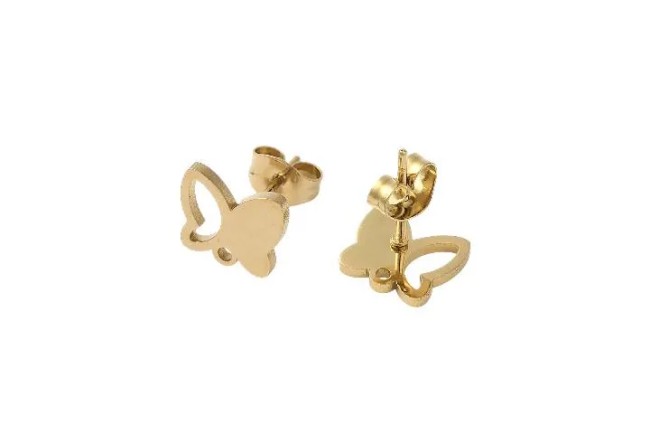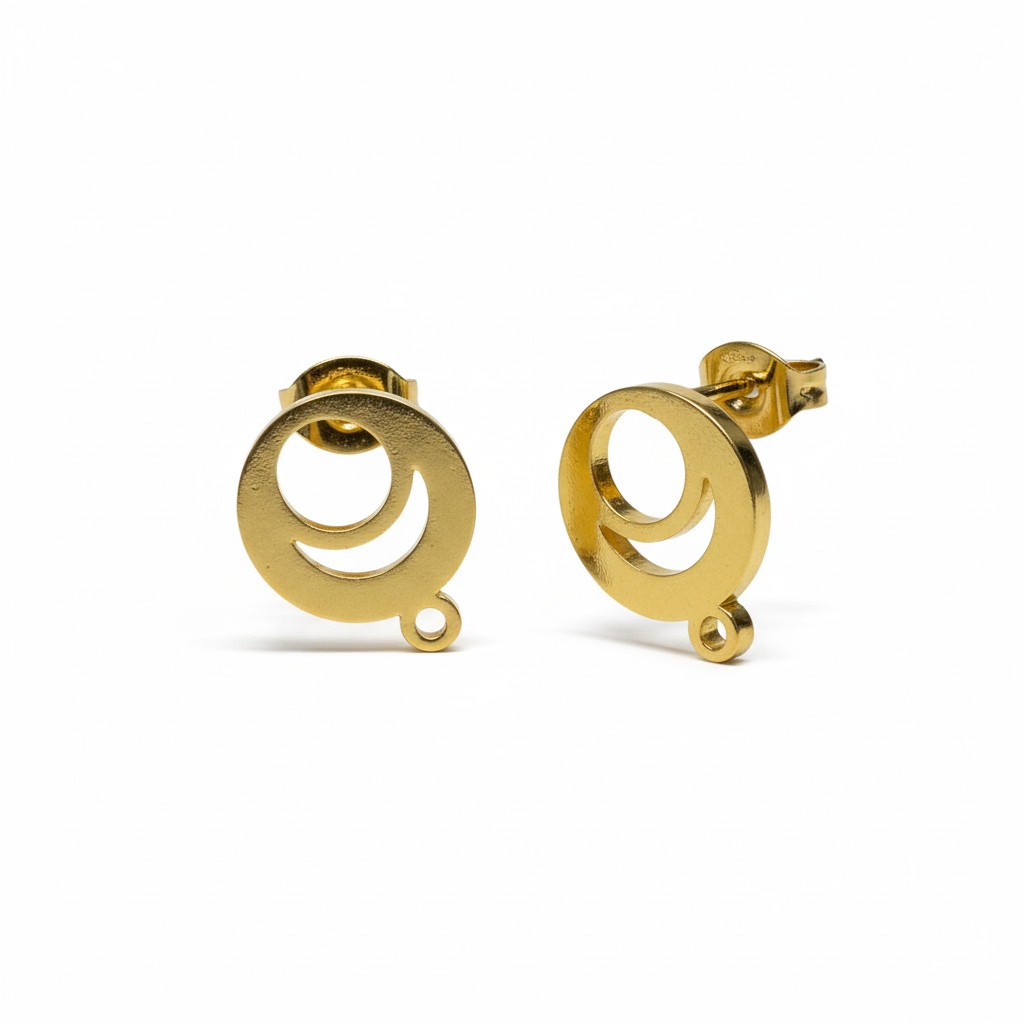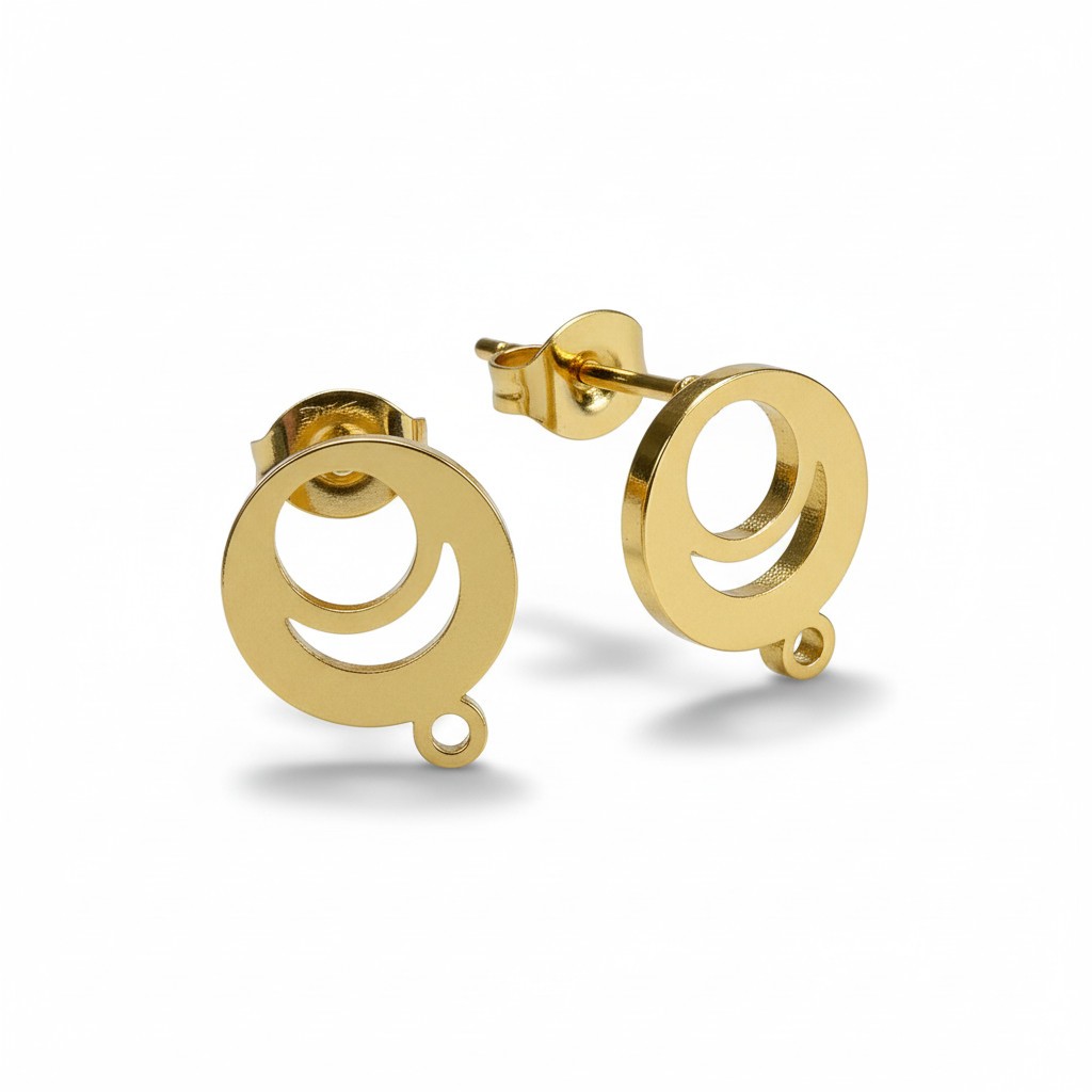 Lot de quatre supports de boucles d'oreilles ronds et évidés sur la moitié de celui-ci, acier inoxydable doré, placage ionique.