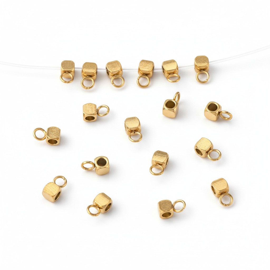 Six petites bélières forme cube en acier inoxydable 304 doré, placage ionique (IP).