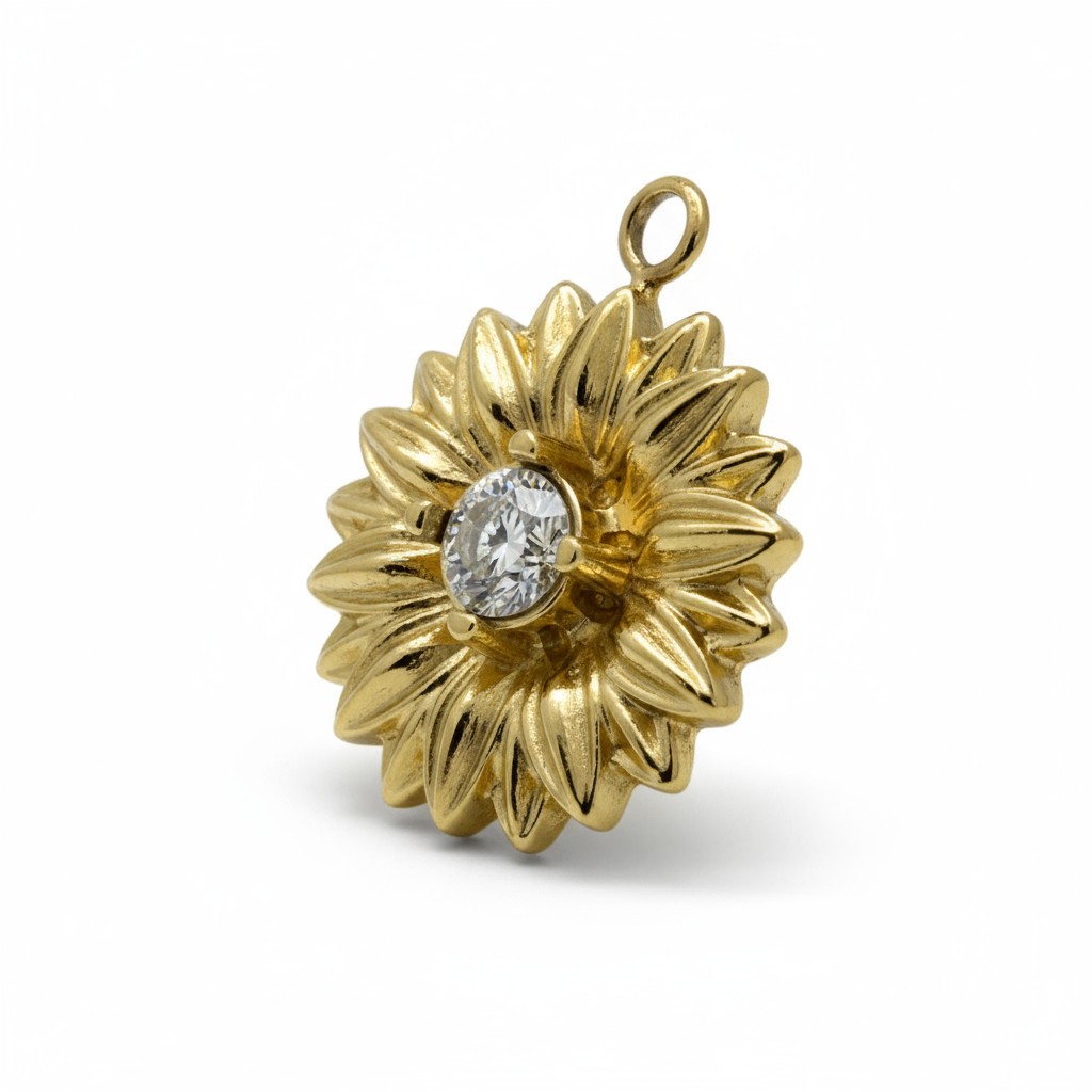 Pendentif fleur avec strass central, acier inoxydable 304 plaqué or 18k, placage ionique (ip).
