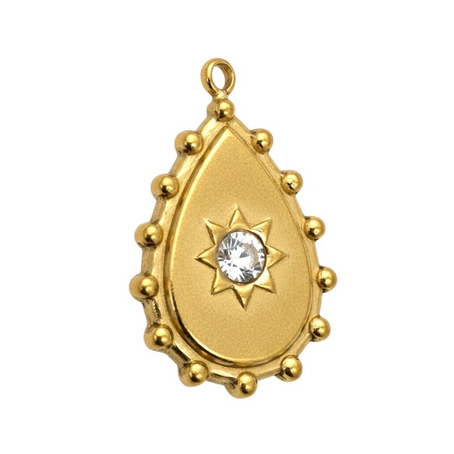 Pendentif forme goutte avec strass au centre, en acier inoxydable 304 doré.