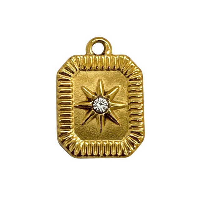 Pendentif rectangle et soleil avec strass au centre, acier inoxydable 304 doré.