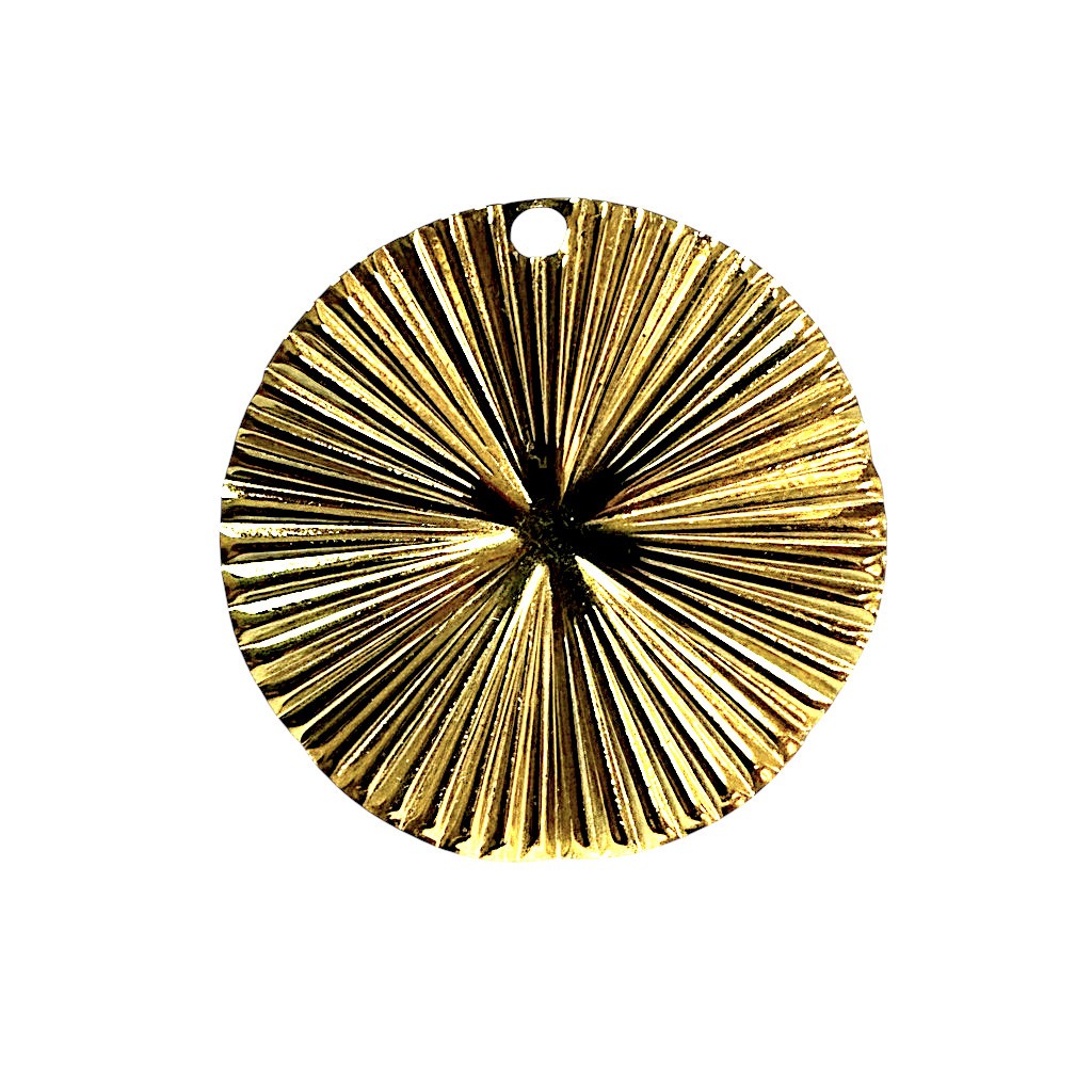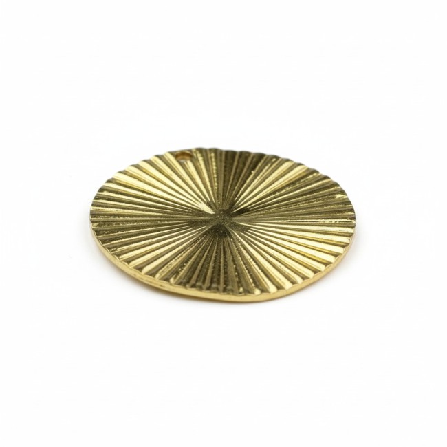Grand pendentif rond et ondulé en acier inoxydable 304 plaqués or véritable 18k, placage ionique (IP).