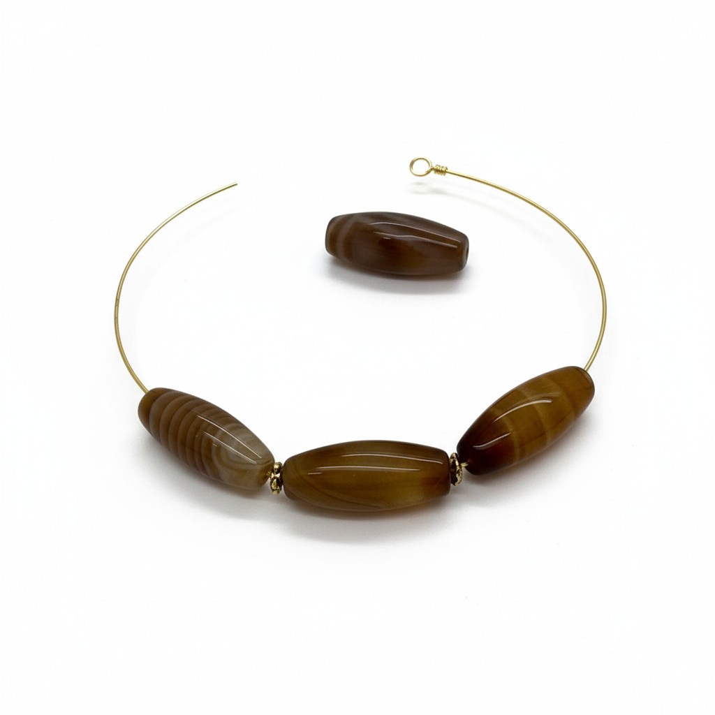 Deux perles d'agate naturelle à bandes de forme ovale allongé.