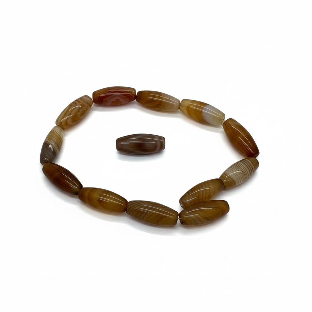 2 perles d'agate naturelle à bandes, perles forme ovale allongé, 20 mm, PG120