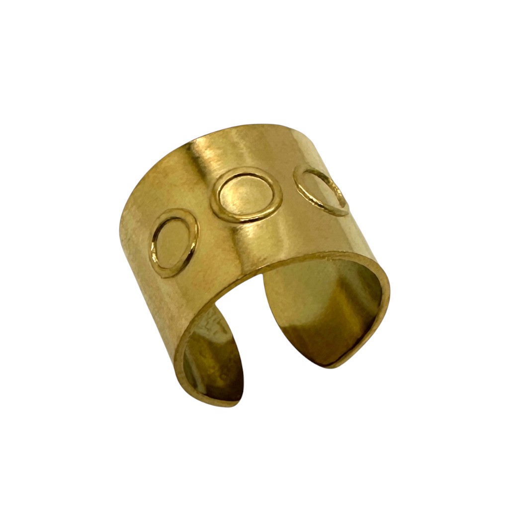 Un support de bague en acier inoxydable 304 doré, plaqué or 14k.