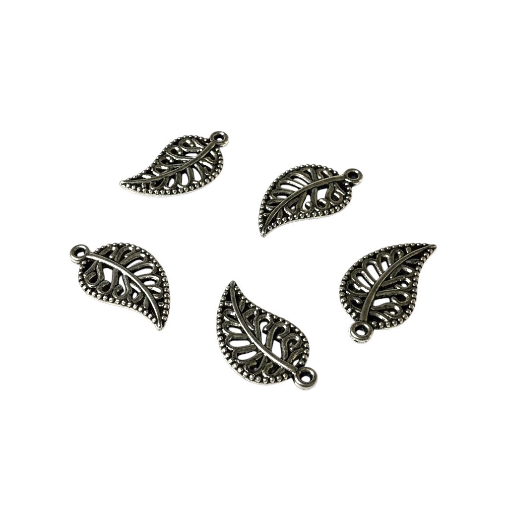 Lot composé de 20 petites breloques feuille en métal argenté vieilli garanti sans nickel.