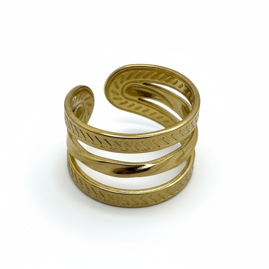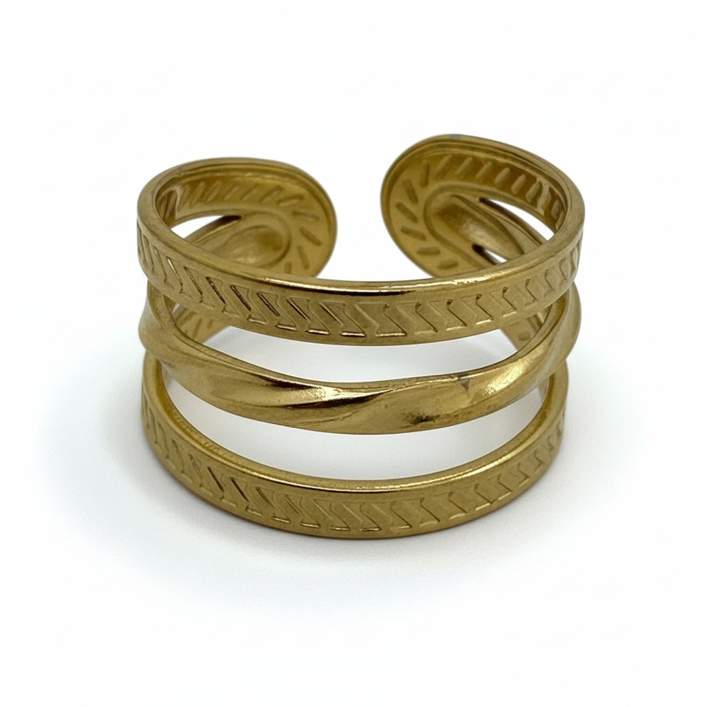 Une bague, anneaux manchette ouverts en acier inoxydable 304 plaqué or 18k.