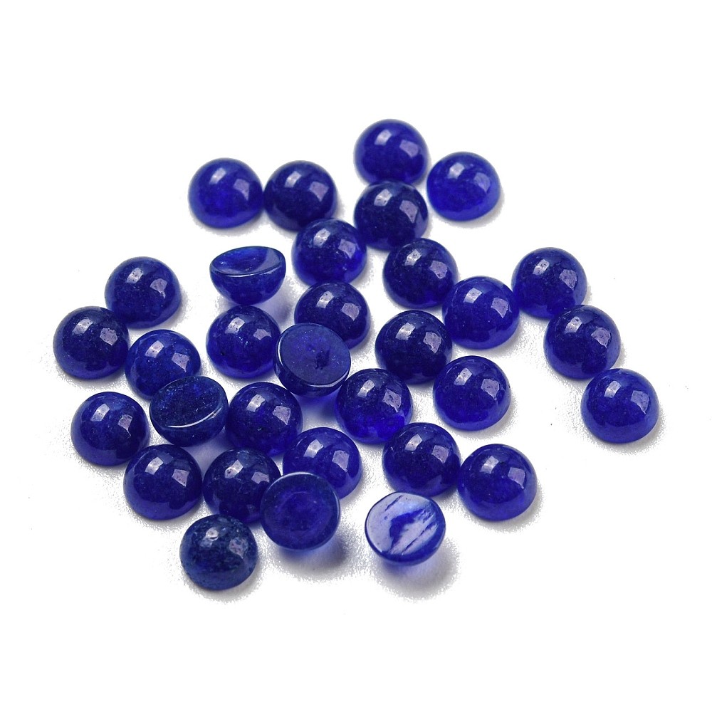 4 cabochons ronds de jade teinté bleu soutenu, 4 mm, CG26