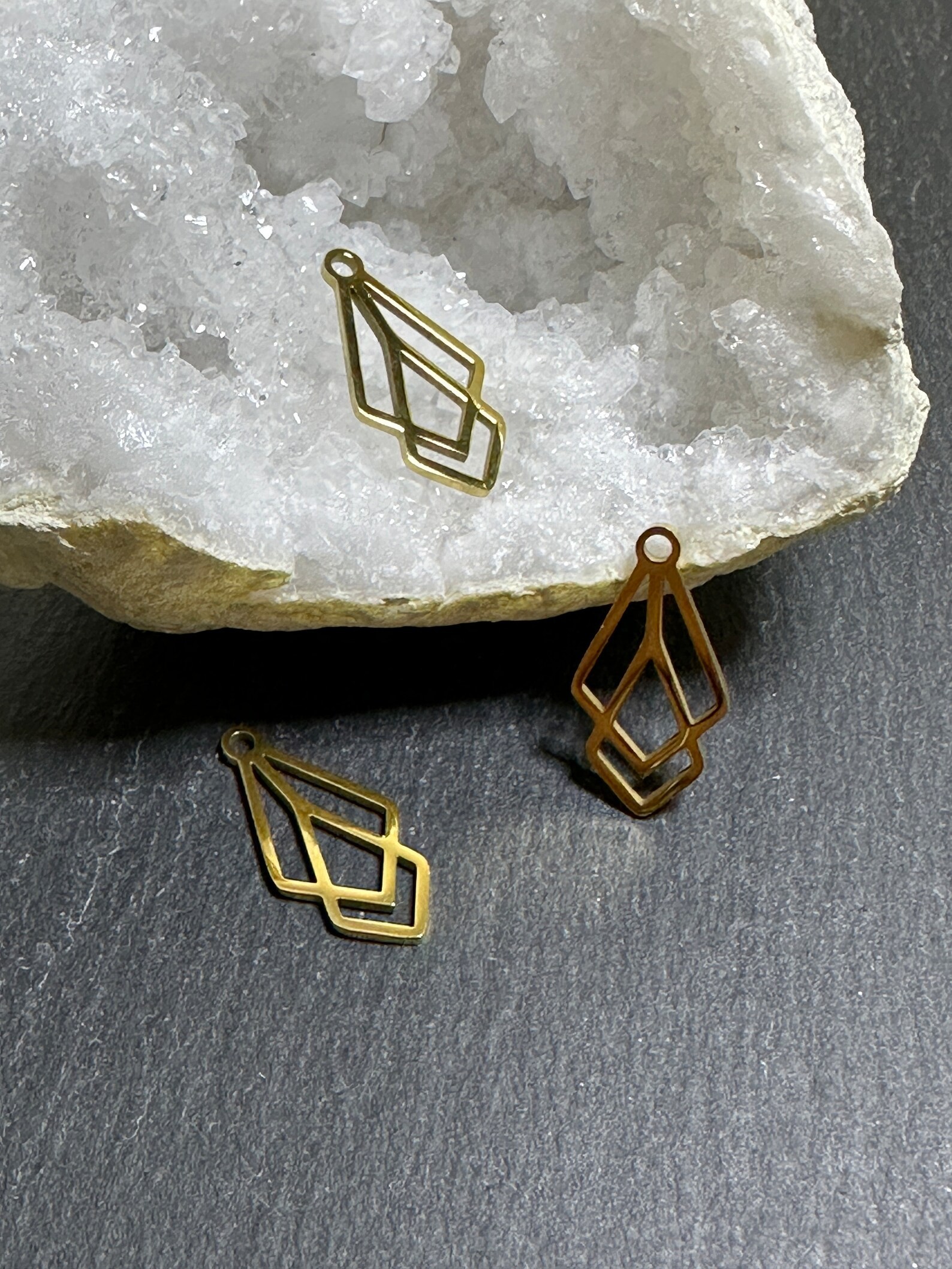 Deux pendentifs forme géométrique en acier inoxydable 201 doré.