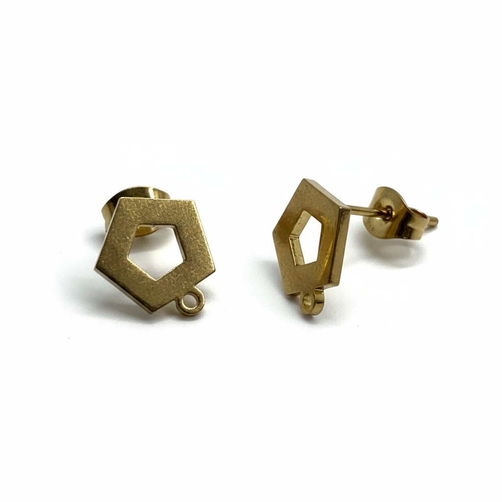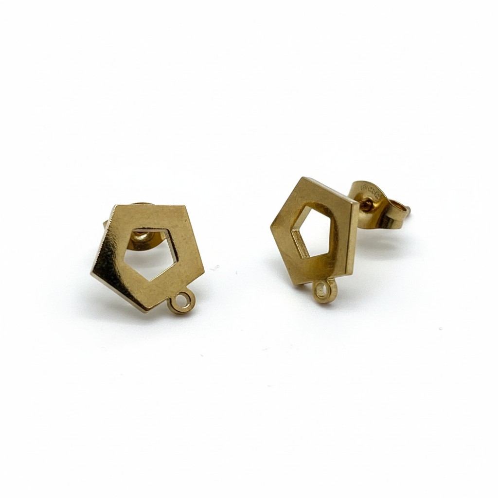 Lot composé de quatre supports de boucles d'oreilles puces en acier inoxydable 304 doré, placage ionique, forme pantagone.