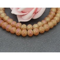 Lot composé de vingt perles boulier en verre facetté coloris chocolat doré avec reflets rosés.