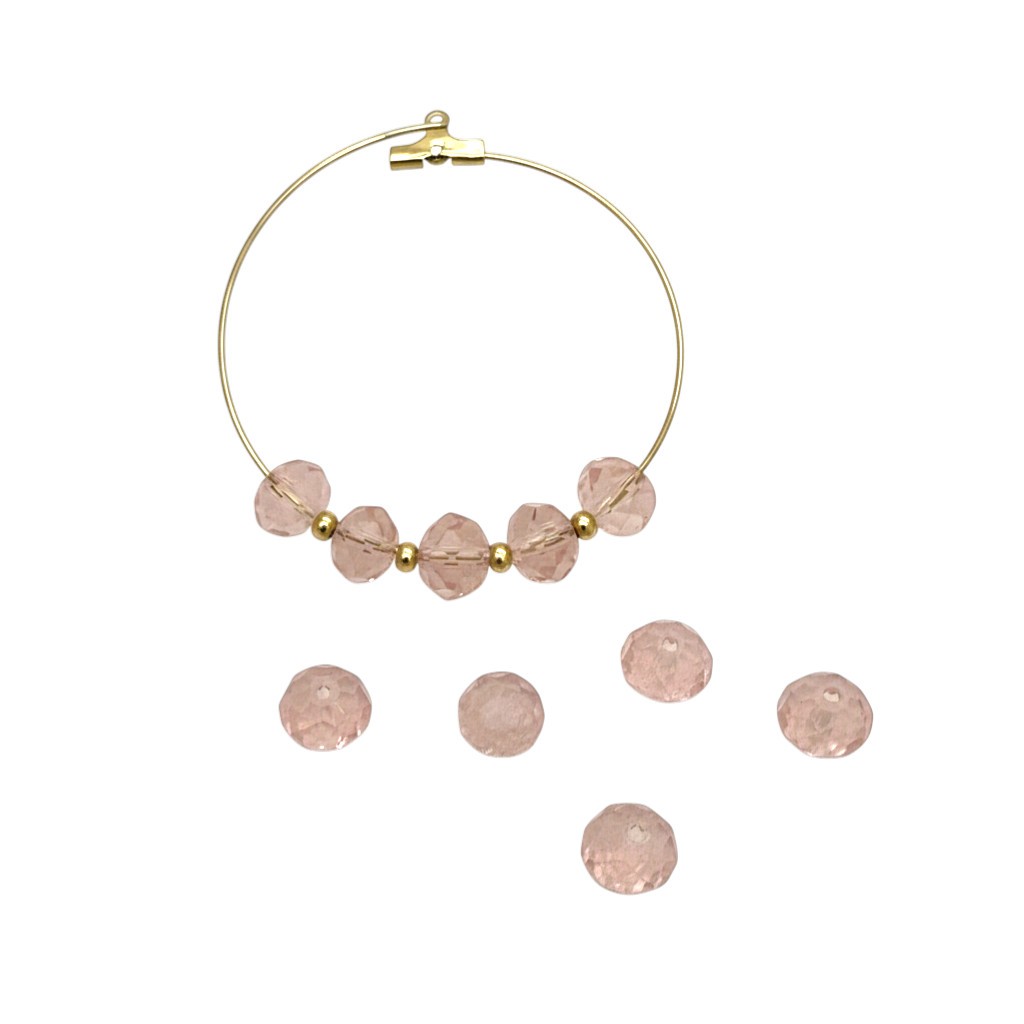 Lot composé de cinquante perles boulier en verre facetté coloris rose.
