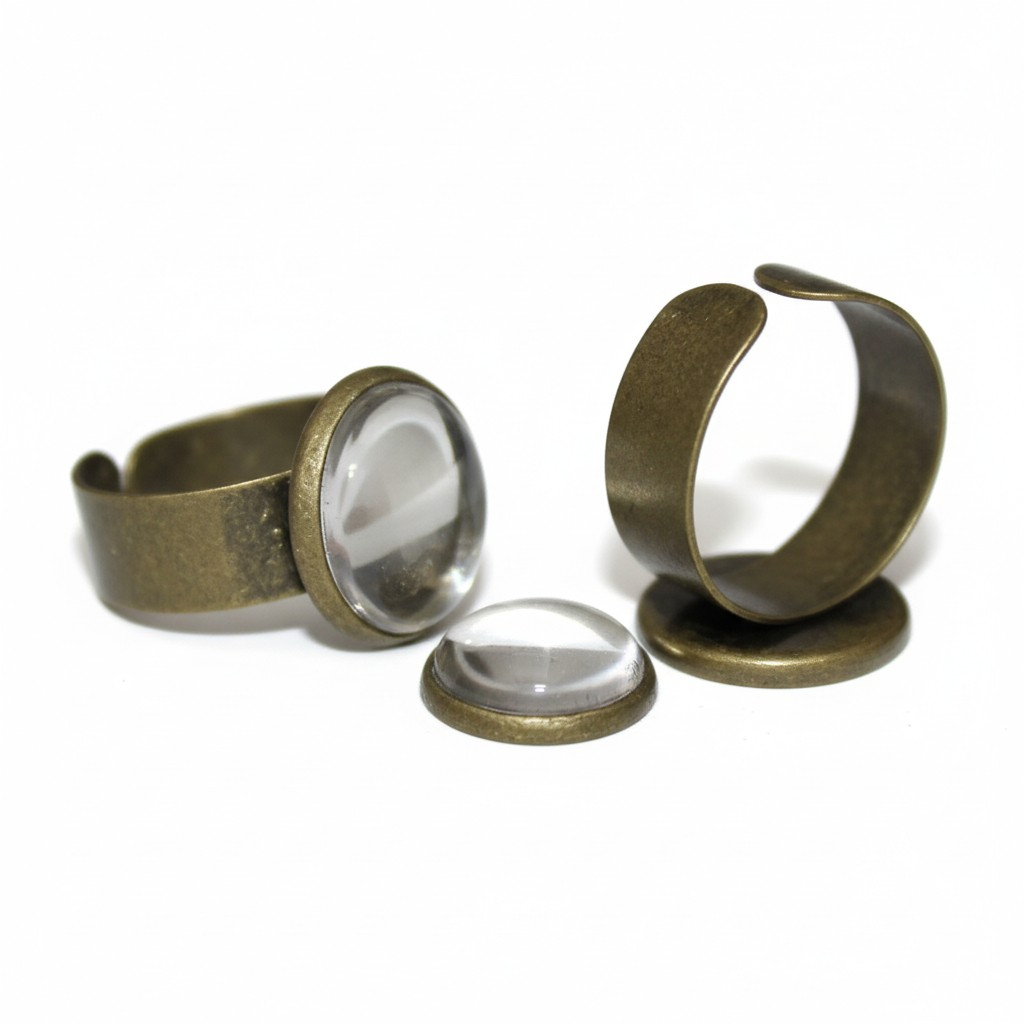 Lot composé de cinq supports de bague réglables 18 mm, en laiton bronze garanti sans plomb sans nickel et sans cadmium pour cabochon en verre, résine ou pierre semi-précieuse.
