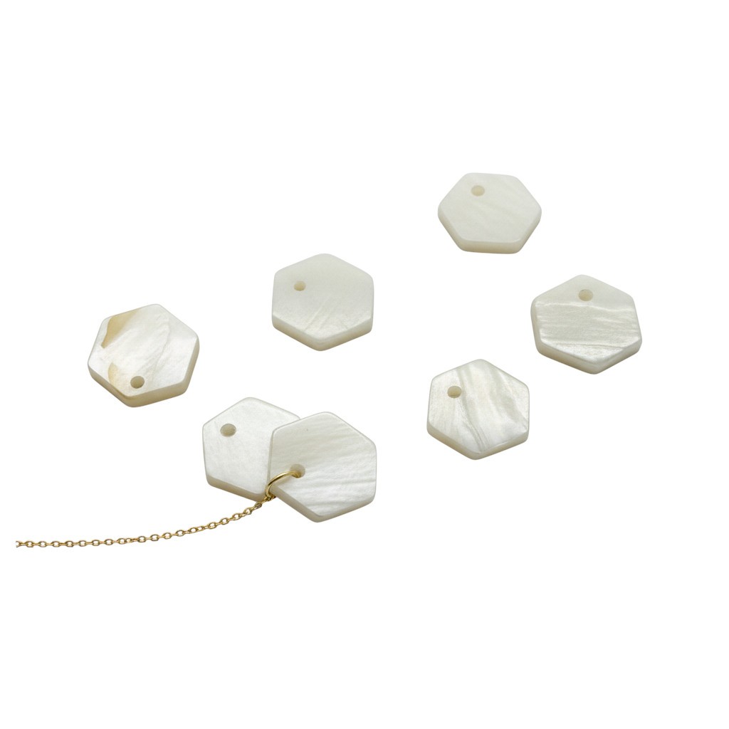Lot composé de vingt breloques hexagonales en coquille d'eau douce naturelle.