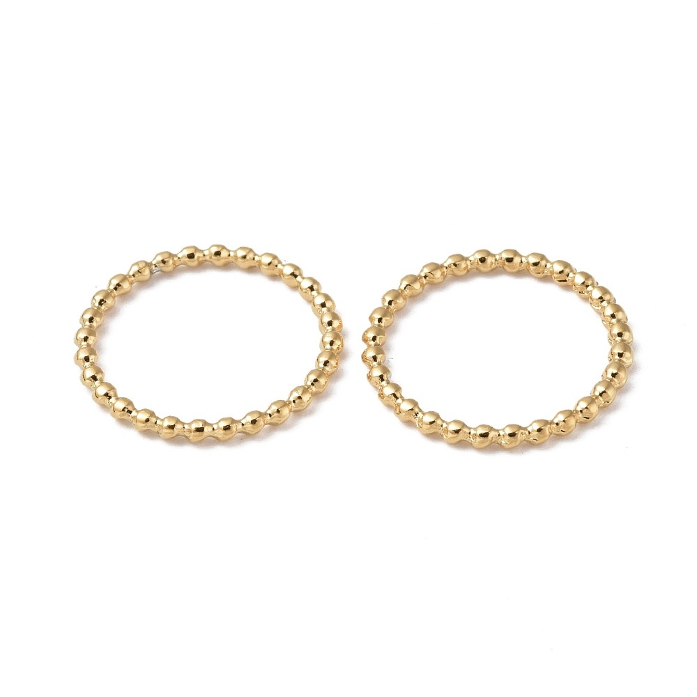 Deux connecteurs ronds fermés et travaillés en acier inoxydable 304 plaqué or 18k, placage ionique.