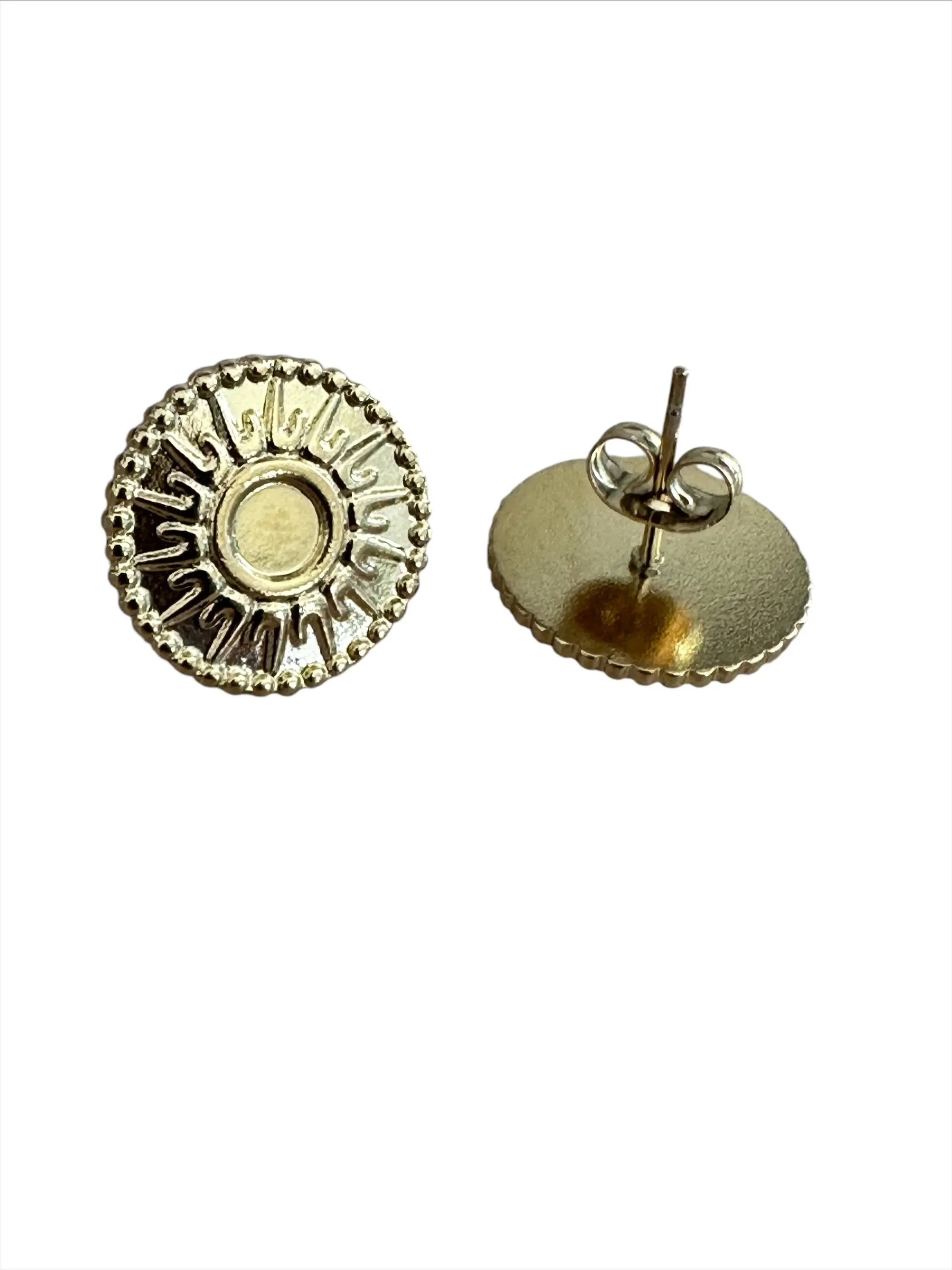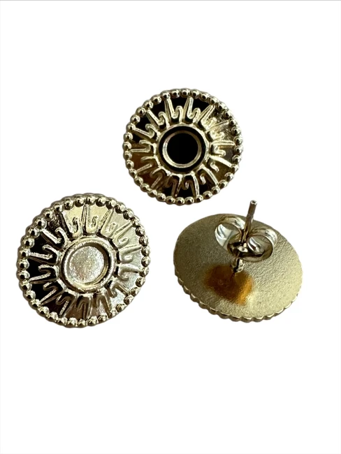 Lot composé de deux supports de boucles d'oreilles puces ronds pour cabochon de 4 mm en acier inoxydable 304 plaqué or 18k, placage ionique.