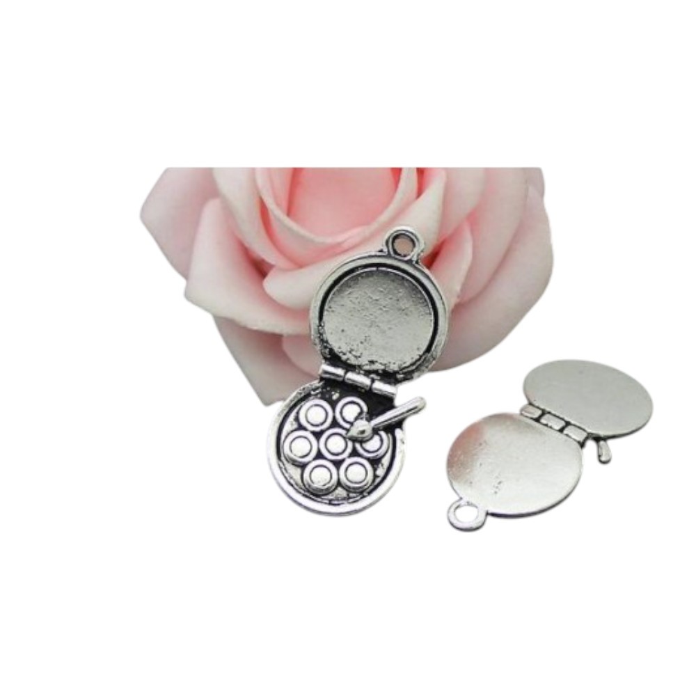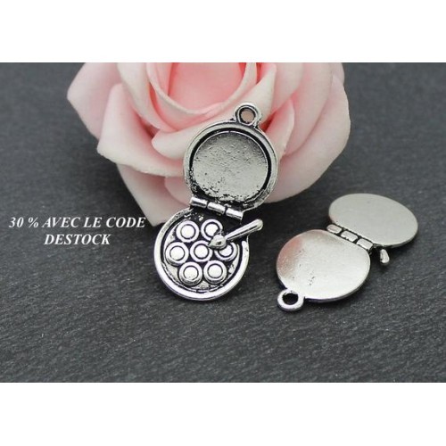 Lot composé de quatre breloques 3D palette de maquillage en métal argenté vieilli.